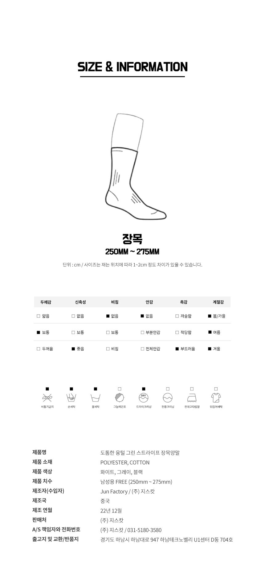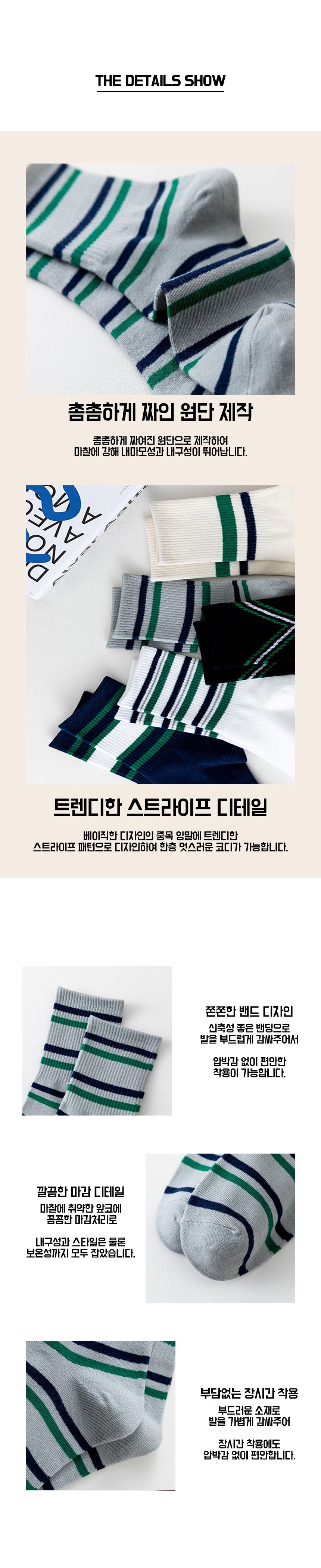 • 얇지 않은 두툼함으로 발을 잘 감싸주고 포인트 스트라이프 디자인까지
