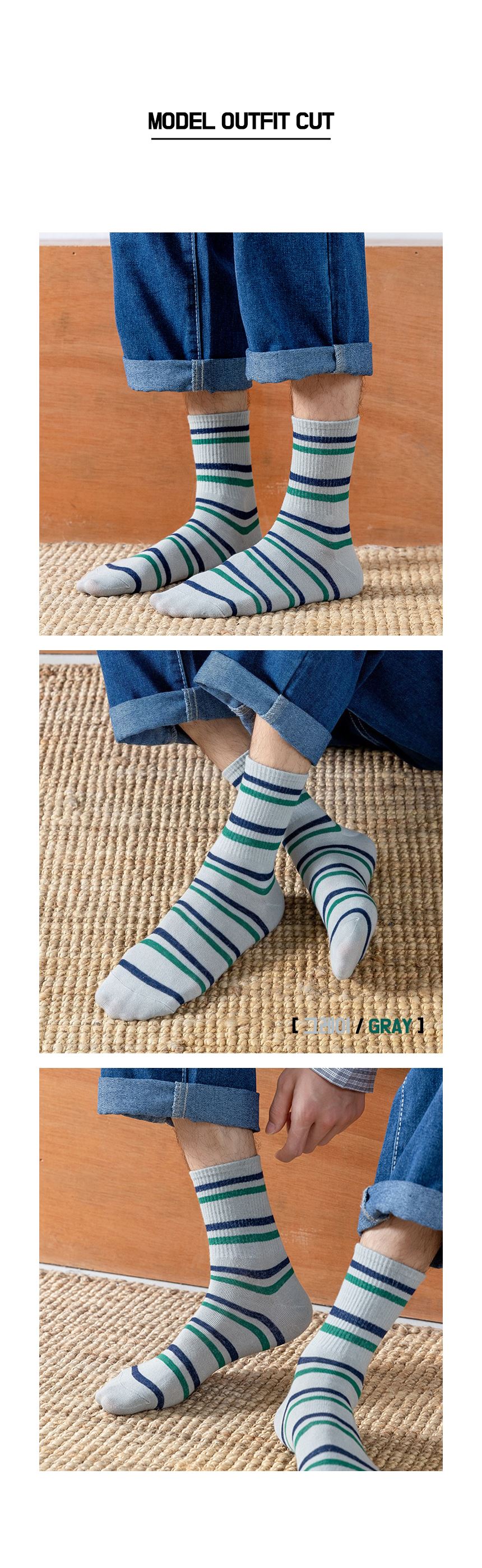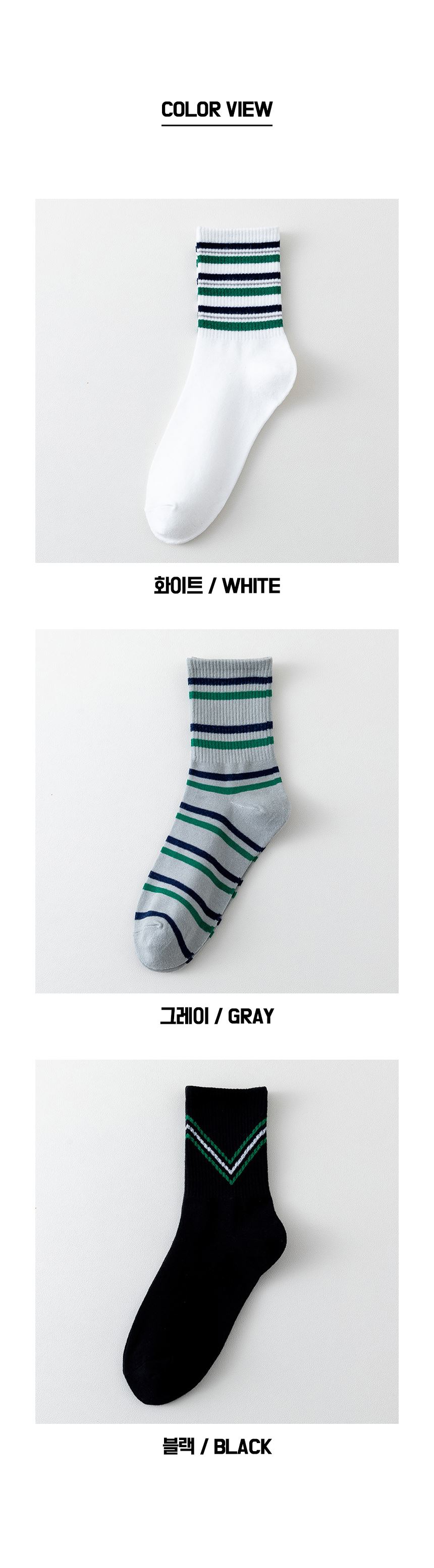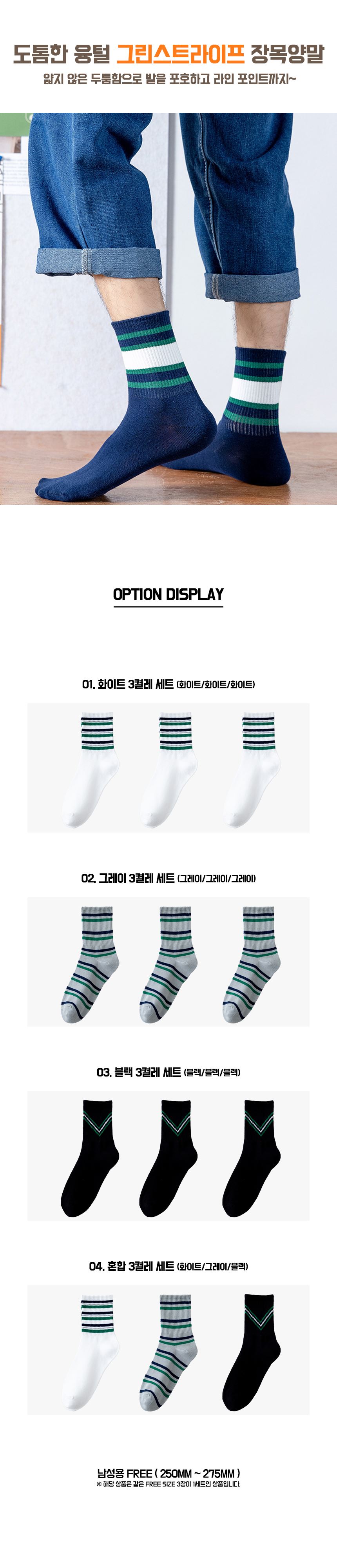 • [SOC-017] 남성용 도톰한 융털 그린 스트라이프 장목양말 3켤레 세트