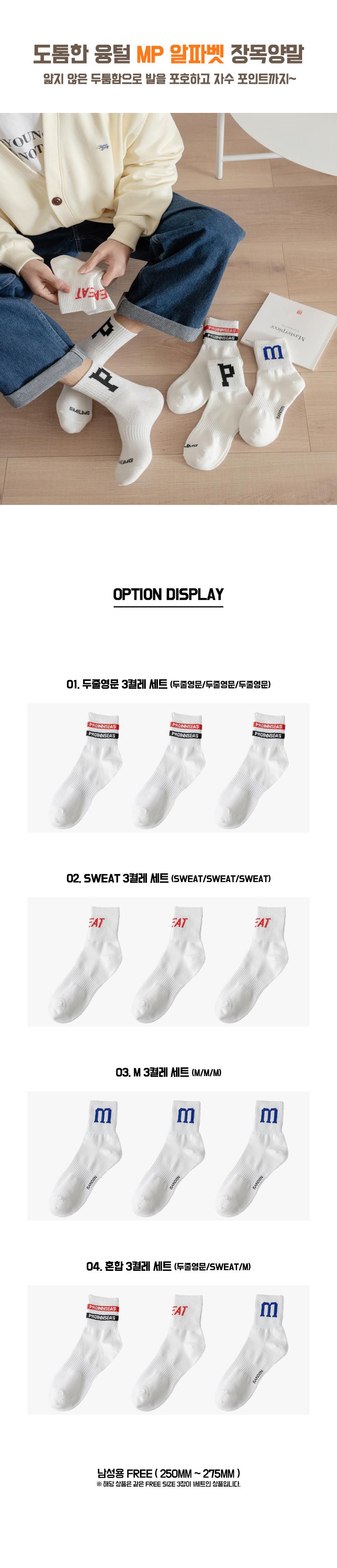 • [SOC-018] 남성용 도톰한 융털 MP 알바펫 장목양말 3켤레 세트