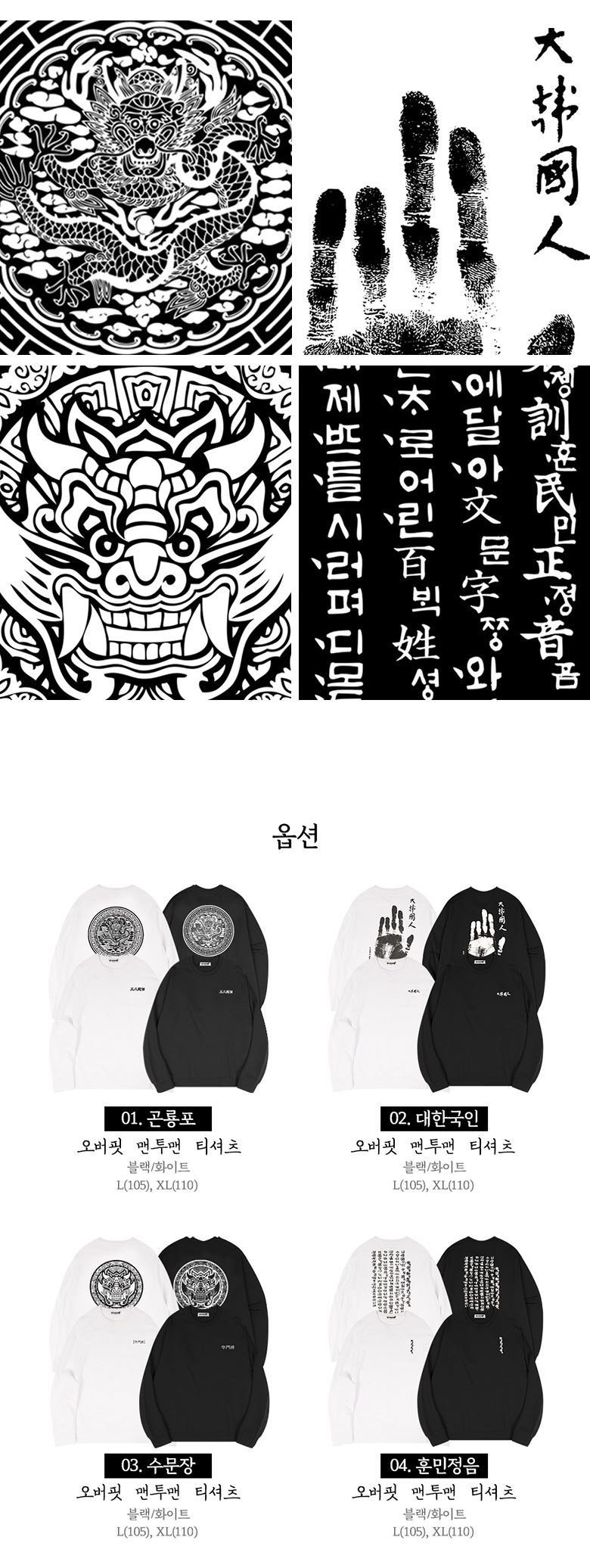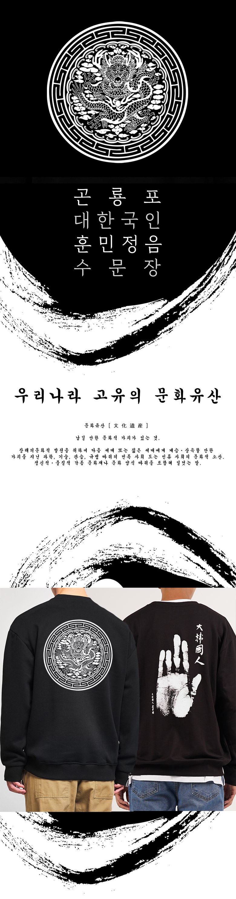 • [ACT] 남녀공용 국내생산 오버핏 문화유산 프린트 맨투맨 티셔츠 곤룡표/대한국인/수문장/훈민정음