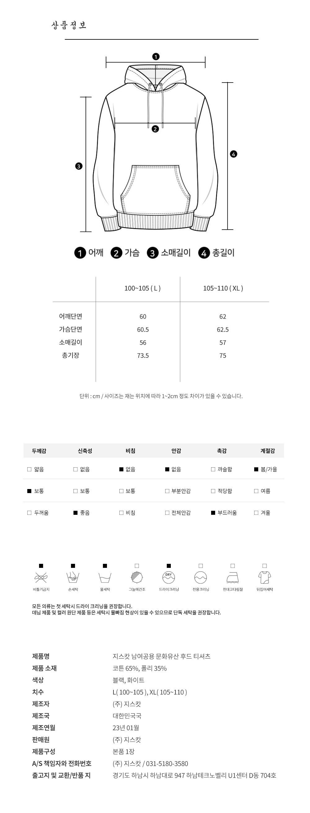 세탁방법 및 취급 시 주의사항 상품상세참조