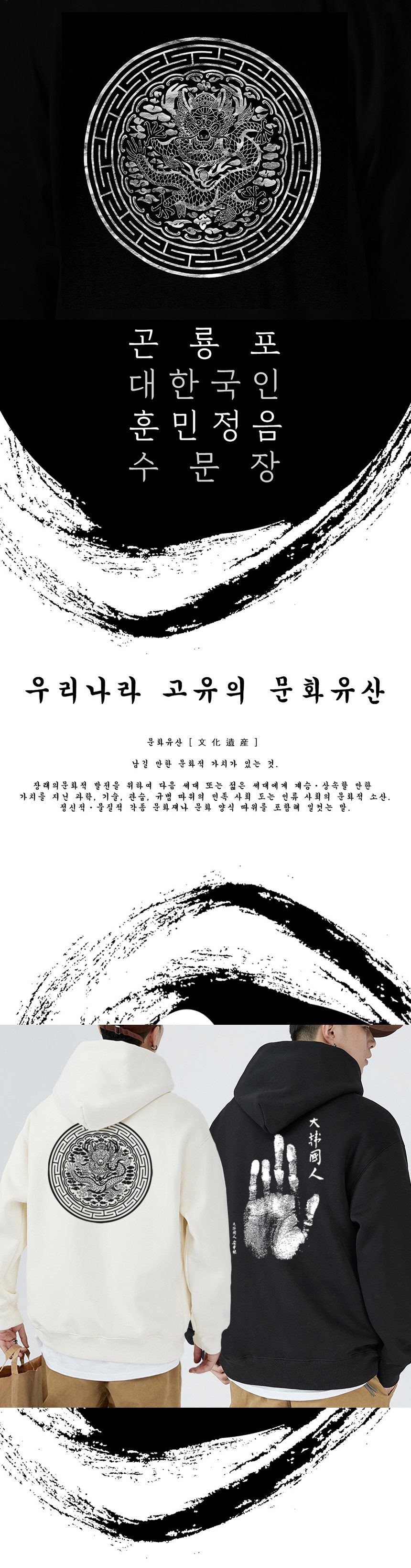 • [ACT] 남녀공용 국내생산 오버핏 문화유산 프린트 후드 티셔츠 곤룡표/대한국인/수문장/훈민정음