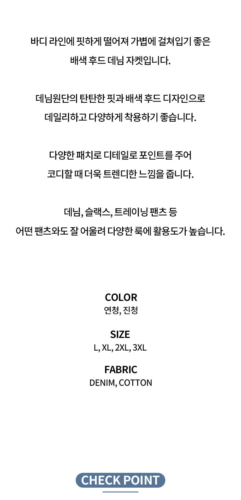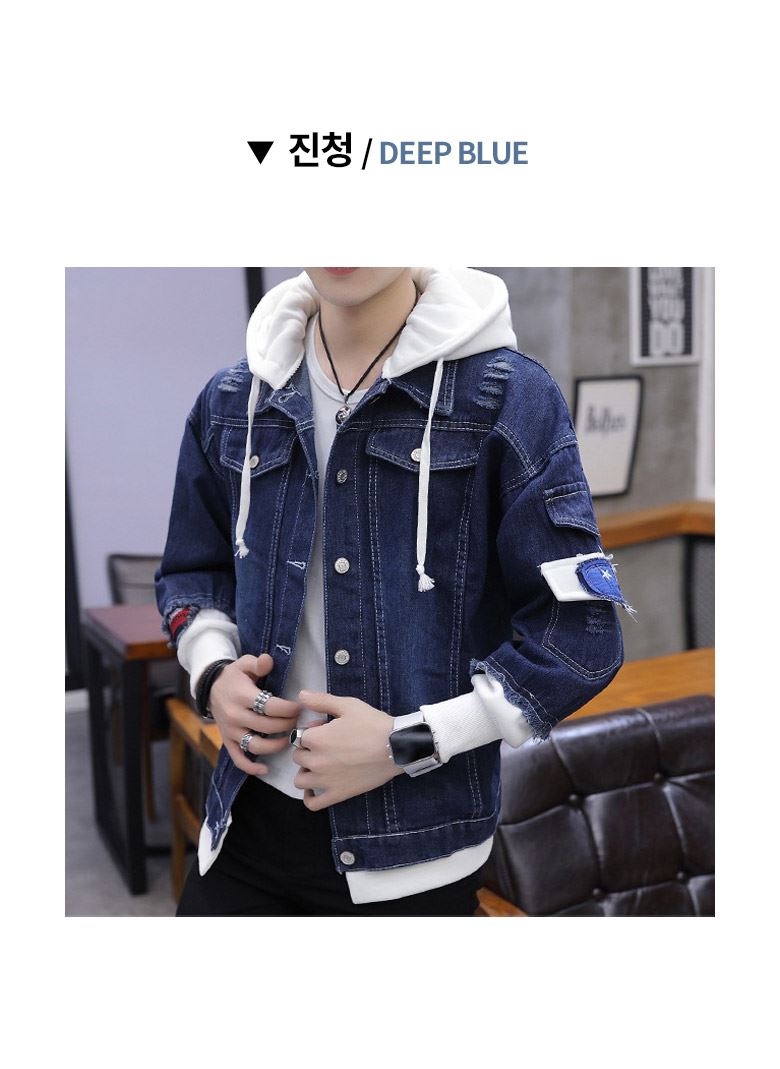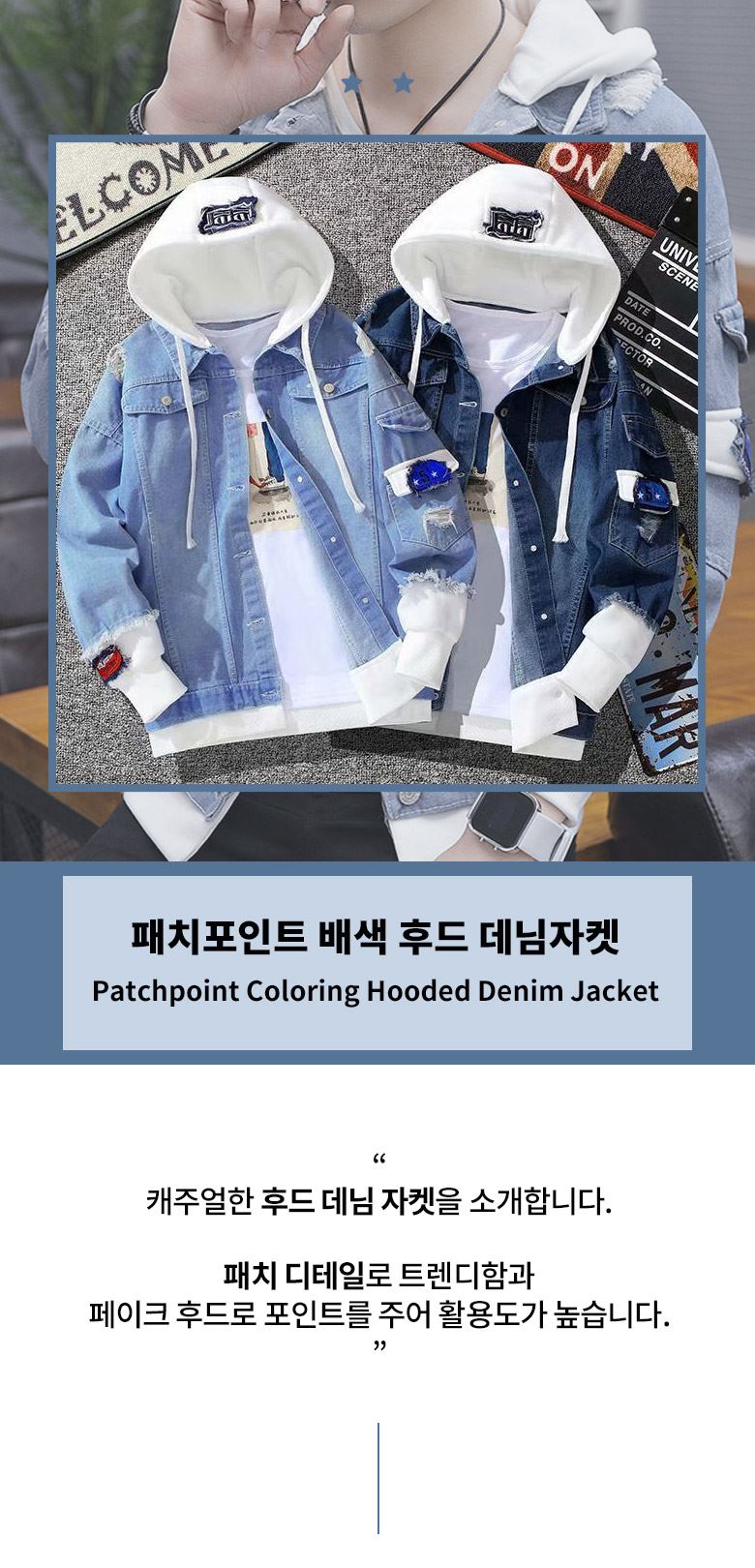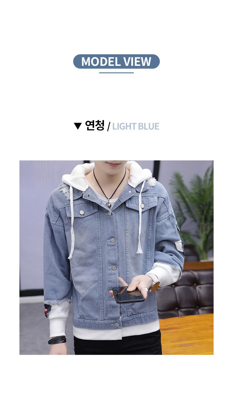 • 패치포인트 배색 후드 데님자켓-YW-146