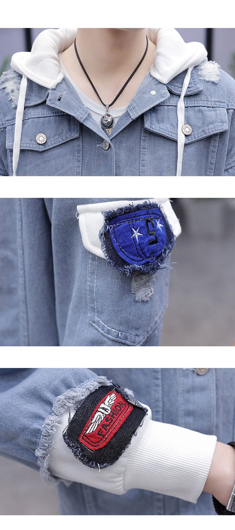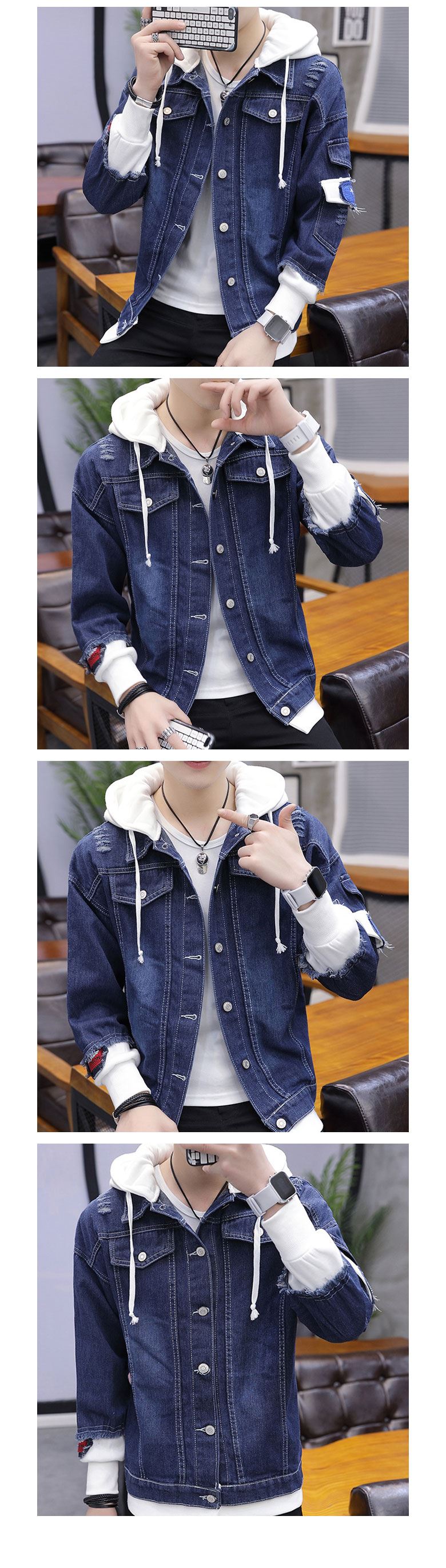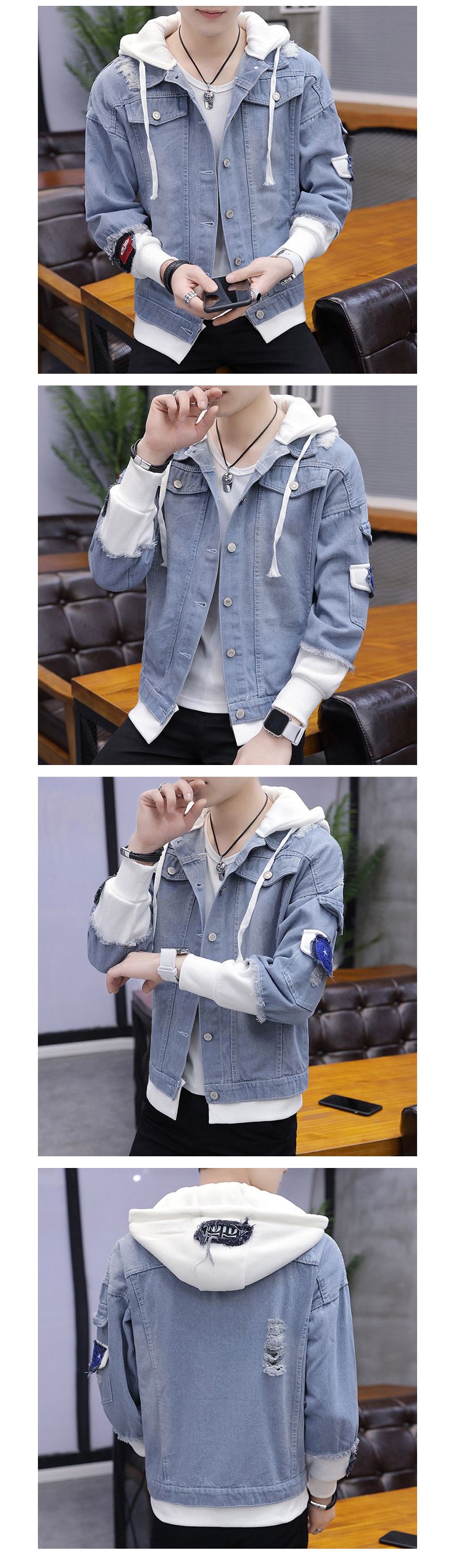 • 패치포인트 배색 후드 데님자켓-YW-146