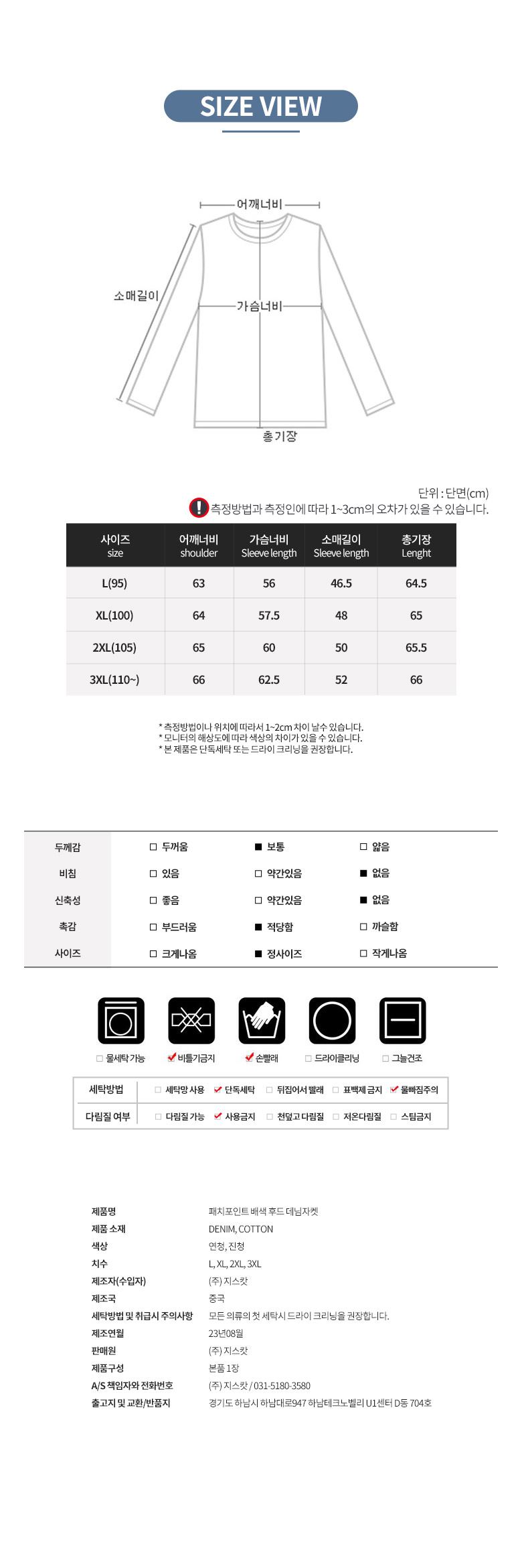 세탁방법 및 취급 시 주의사항 상품상세참조