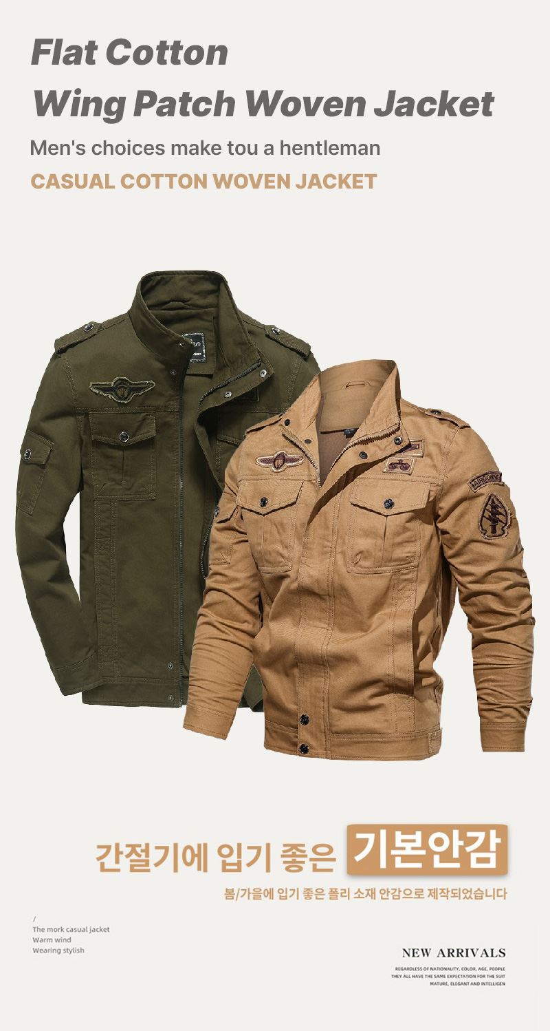 플랫 코튼 윙패치 우븐 자켓-YW-157
