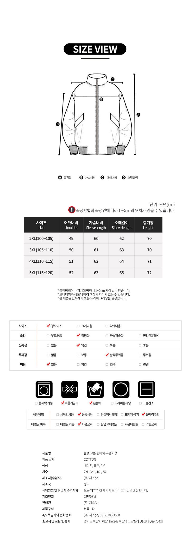 세탁방법 및 취급 시 주의사항 상품상세참조