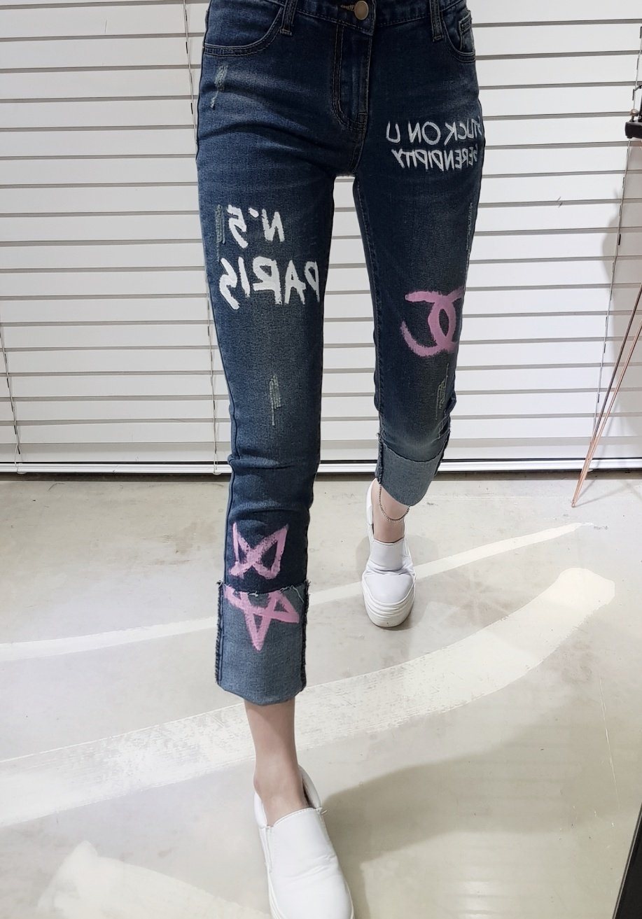 페인팅 나염이 돋보이는 롤업 데님팬츠'