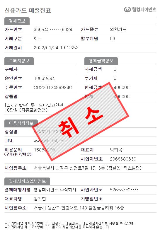 • 한*수님 카드취소 오류건 결제 페이지