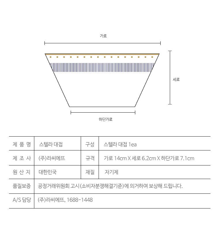 크기(m, cm, mm) 가로 14cm x 세로 6.2cm x 하단가로 7.1cm