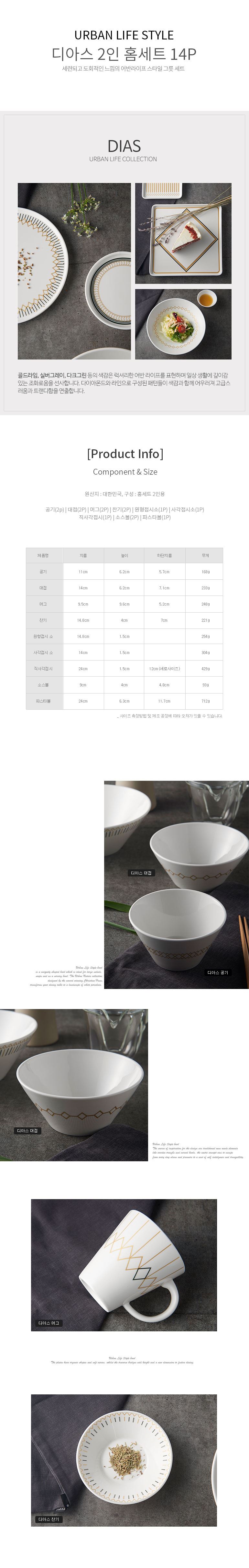 • 디아스 2인 도자기 그릇 홈세트 14p