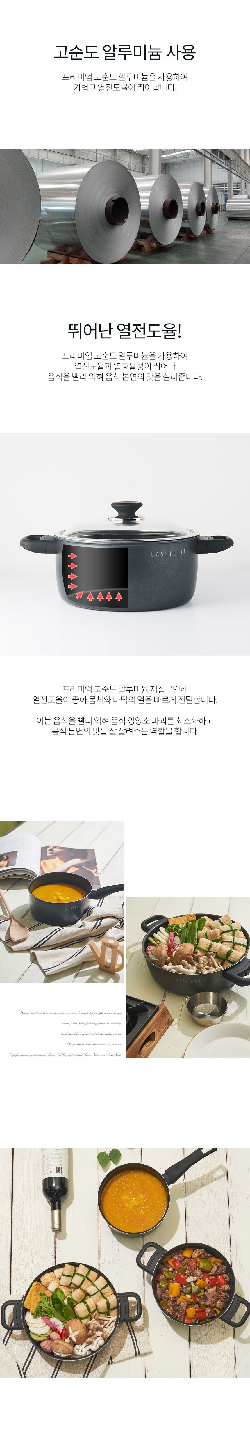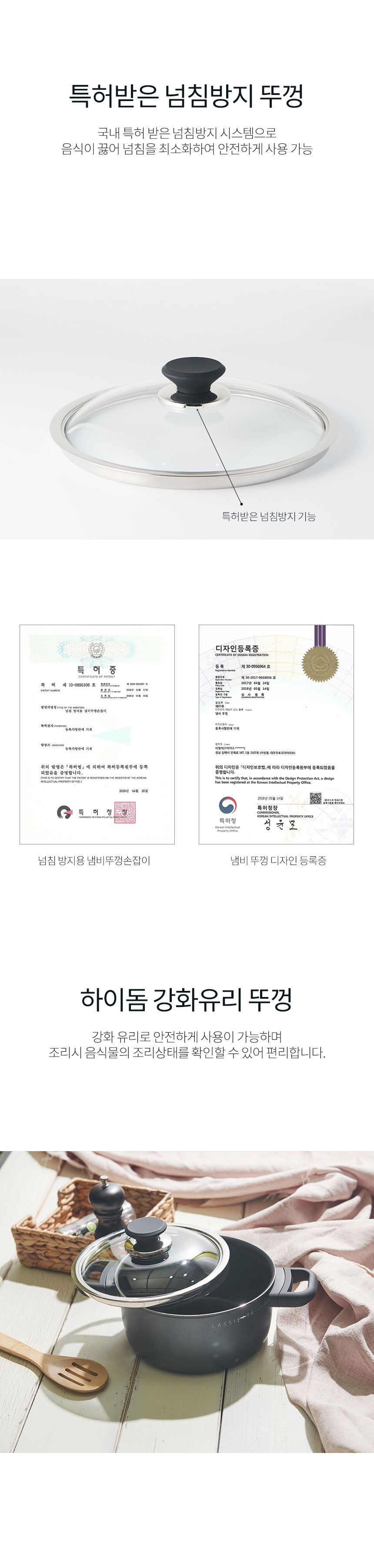 재질 몸체 : 알루미늄합금,불소코팅, 뚜껑 : 강화유리(넘침방지특허) 핸들 : 스테인리스스틸,베이크라이트(소프트터치핸들)