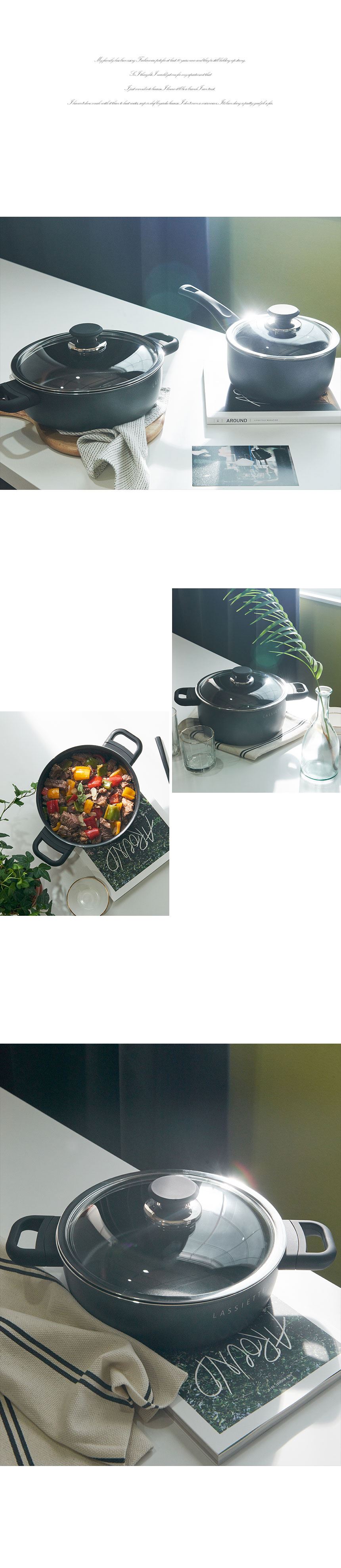 재질 몸체 : 알루미늄합금,불소코팅, 뚜껑 : 강화유리(넘침방지특허) 핸들 : 스테인리스스틸,베이크라이트(소프트터치핸들)