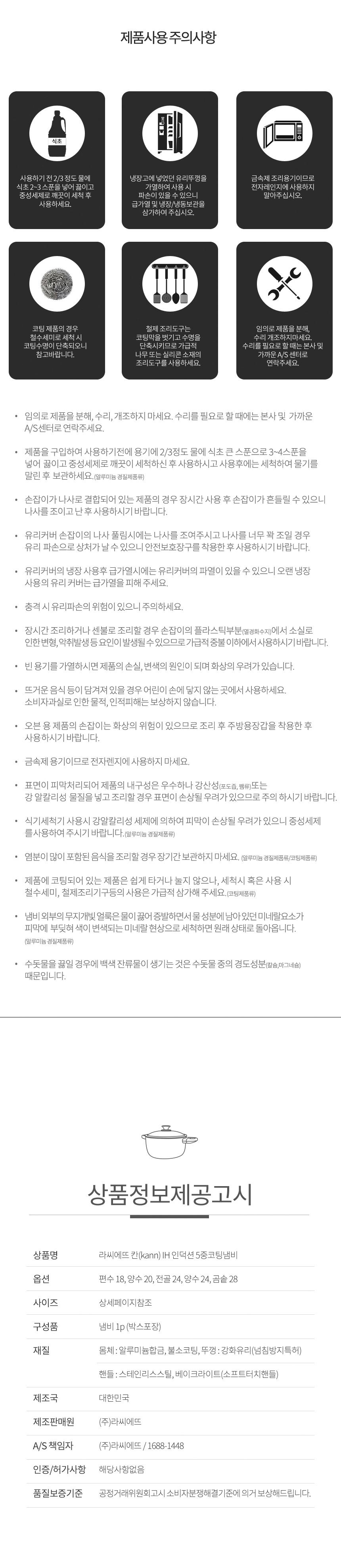 품명 및 모델명 라씨에뜨 칸 IH 인덕션 5중코팅냄비 곰솥 28