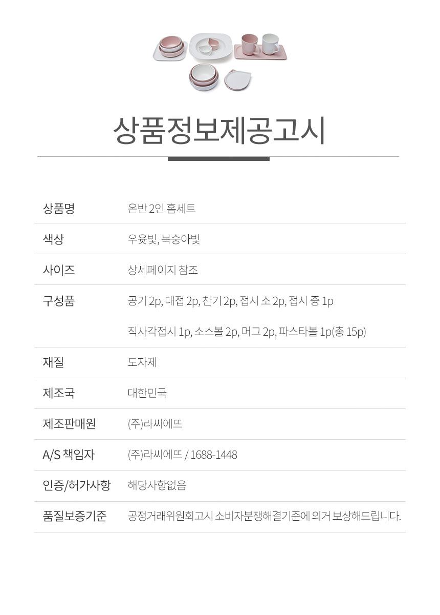 품명 및 모델명 온반 2인 홈세트 우윳빛, 복숭아빛