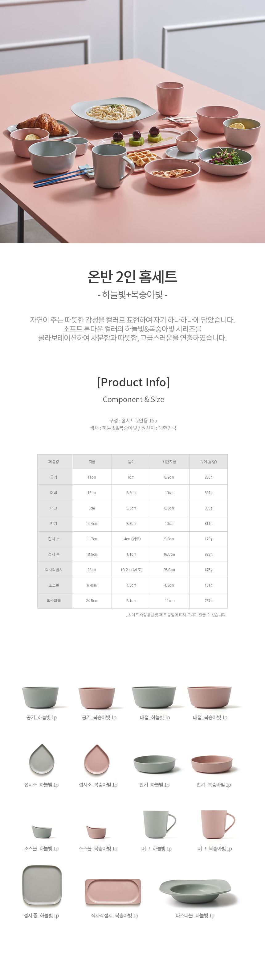 온반 2인 홈세트 15p 하늘빛 복숭아빛
