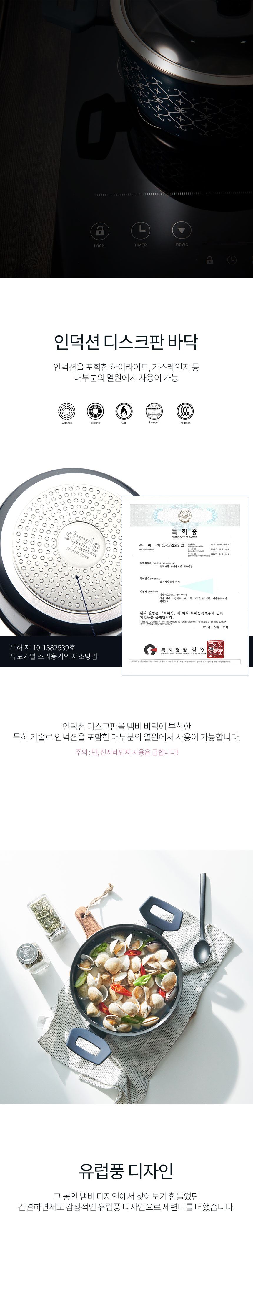 재질 몸체 - 알루미늄합금, 뚜껑 - 강화유리(넘침방지특허) 핸들 - 스테인리스스틸, 베이크라이트(소프트터치핸들)