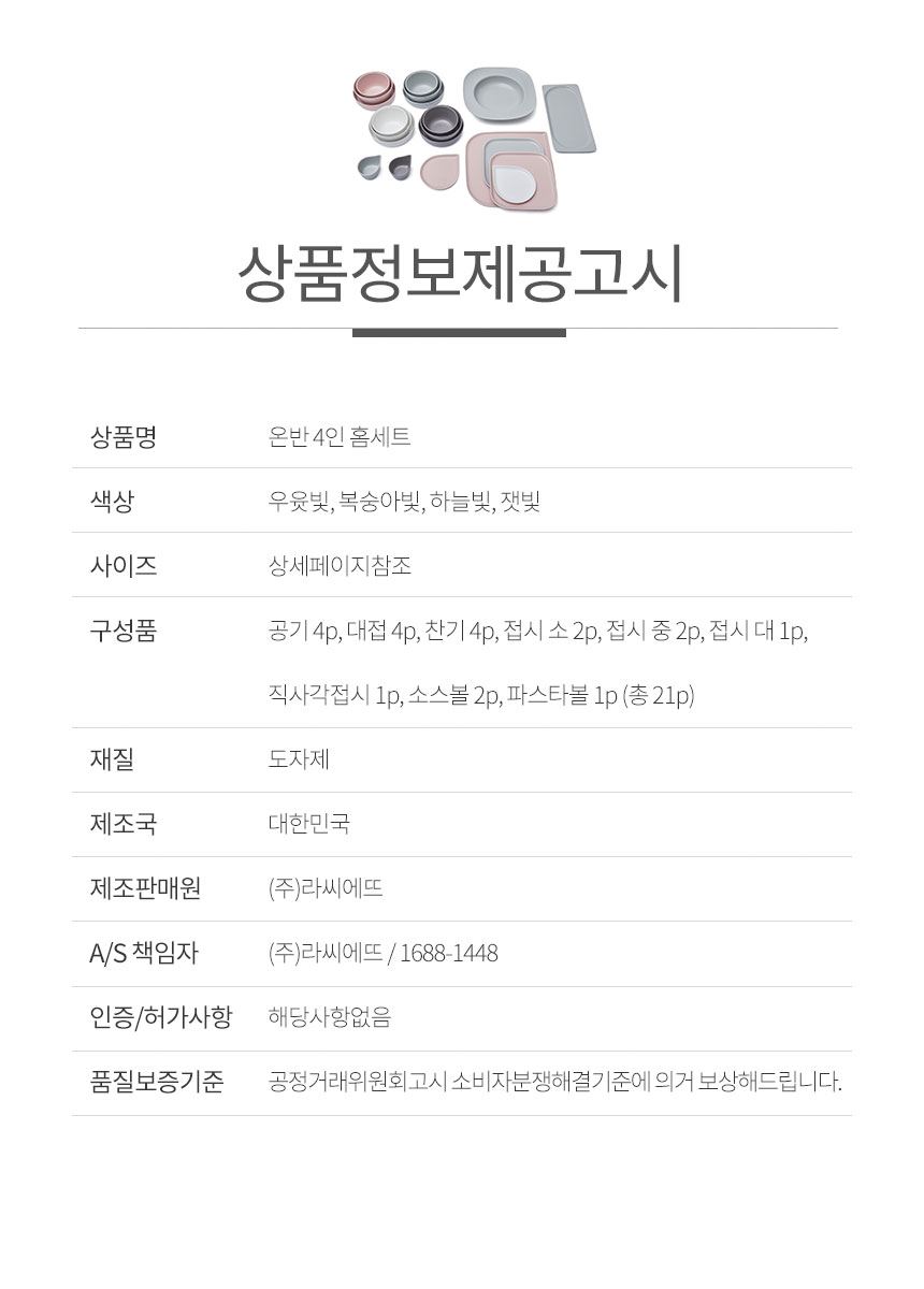 • 온반 4인 홈세트 21p 우윳빛 복숭아빛 하늘빛 잿빛