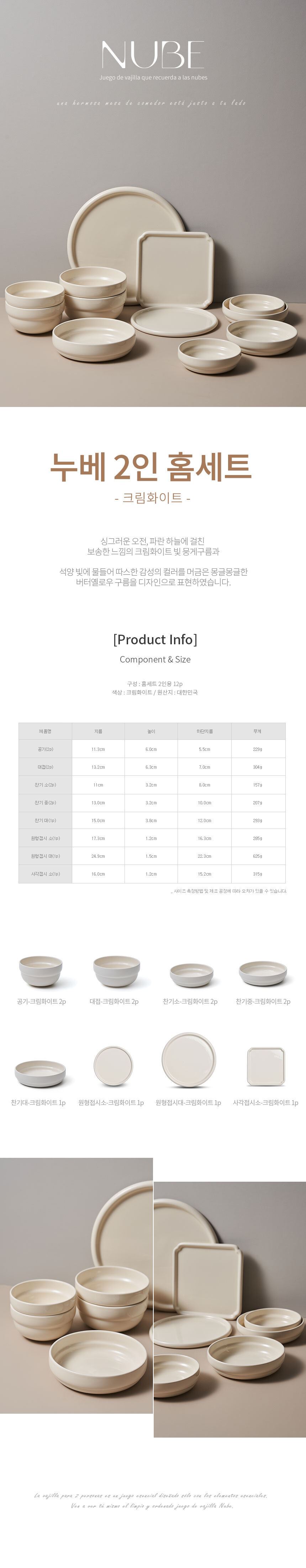 누베 도자기 2인 그릇 홈세트 크림화이트