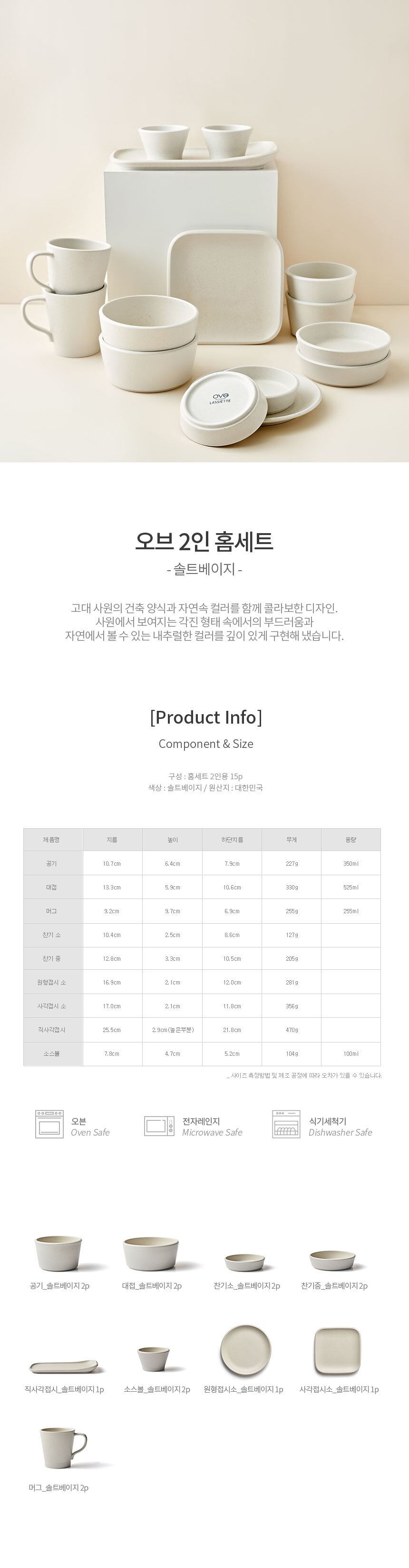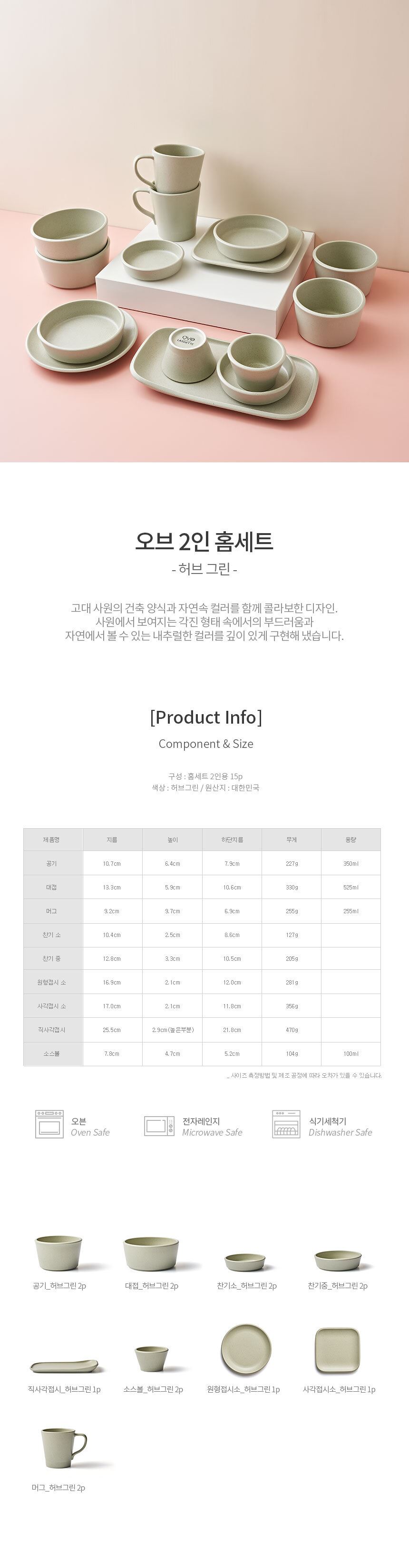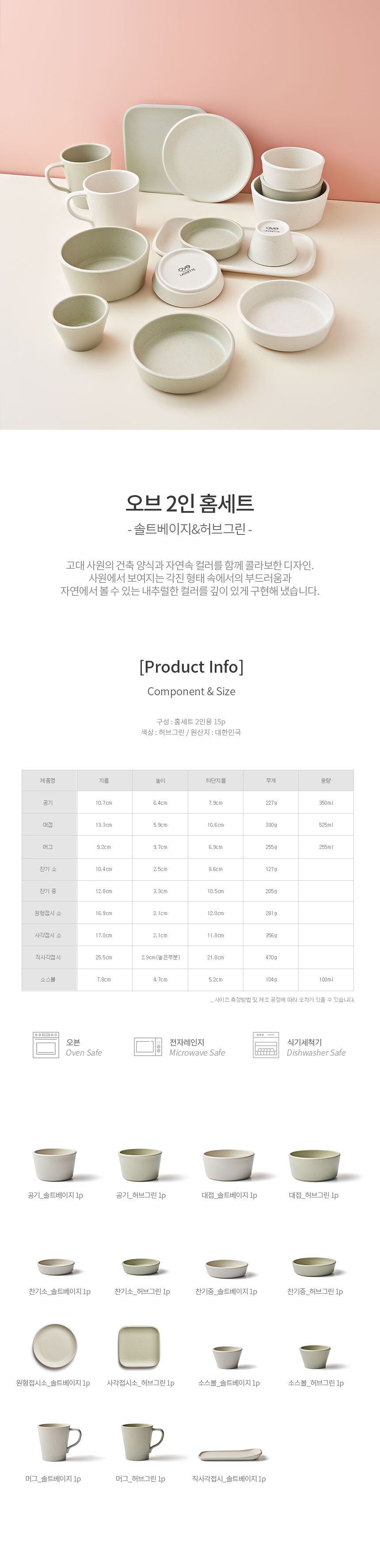 오브 도자기 2인 식기 홈세트 그릇세트 15p