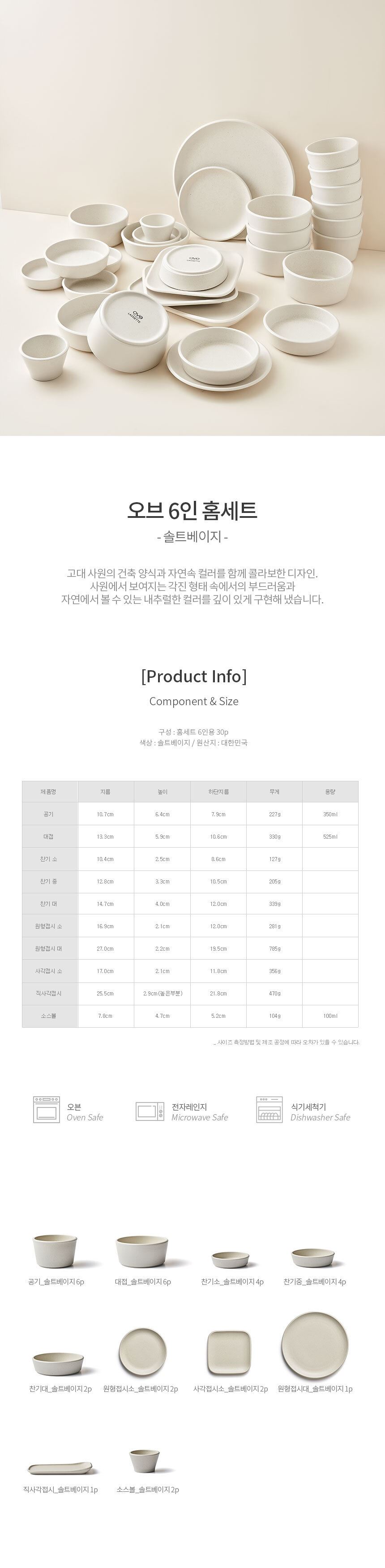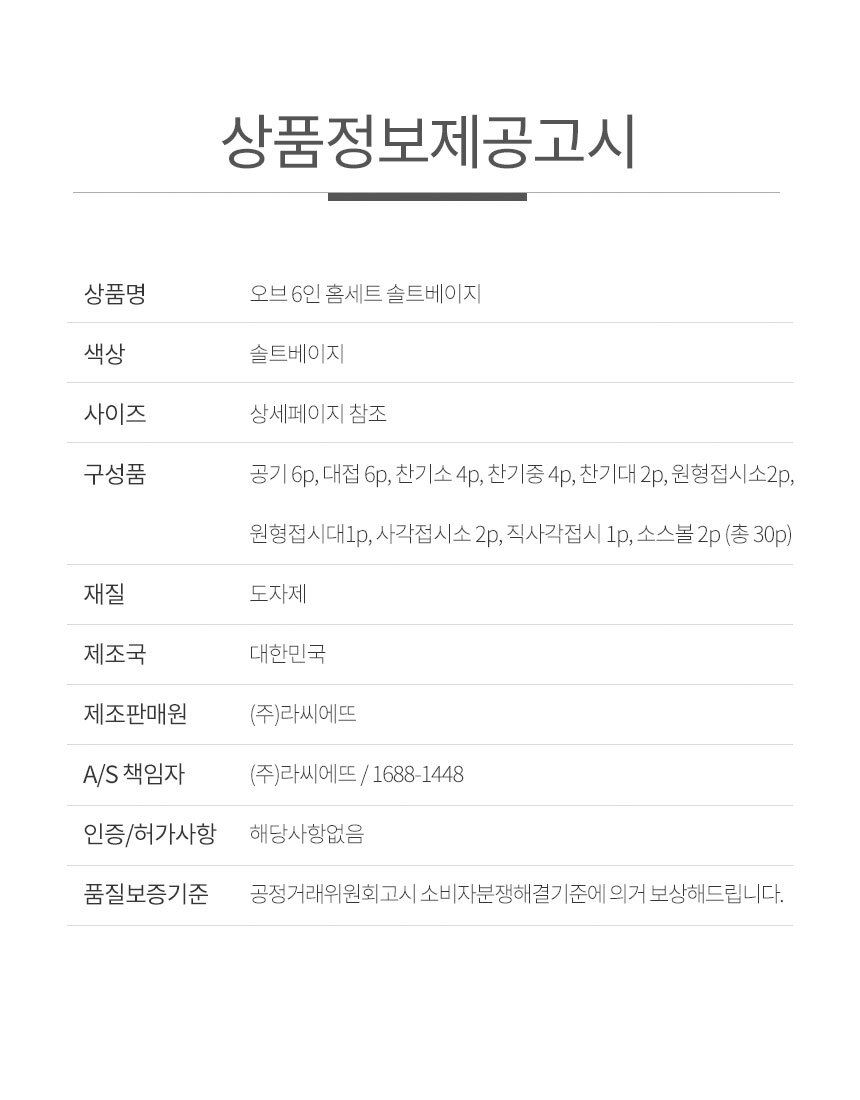 구성품 공기6p,대접6p,찬기소4p,찬기중4p,찬기대2p,원형접시소2p,원형접시대1p,사각접시소2p,직사각접시1p,소스볼2p(총30p)