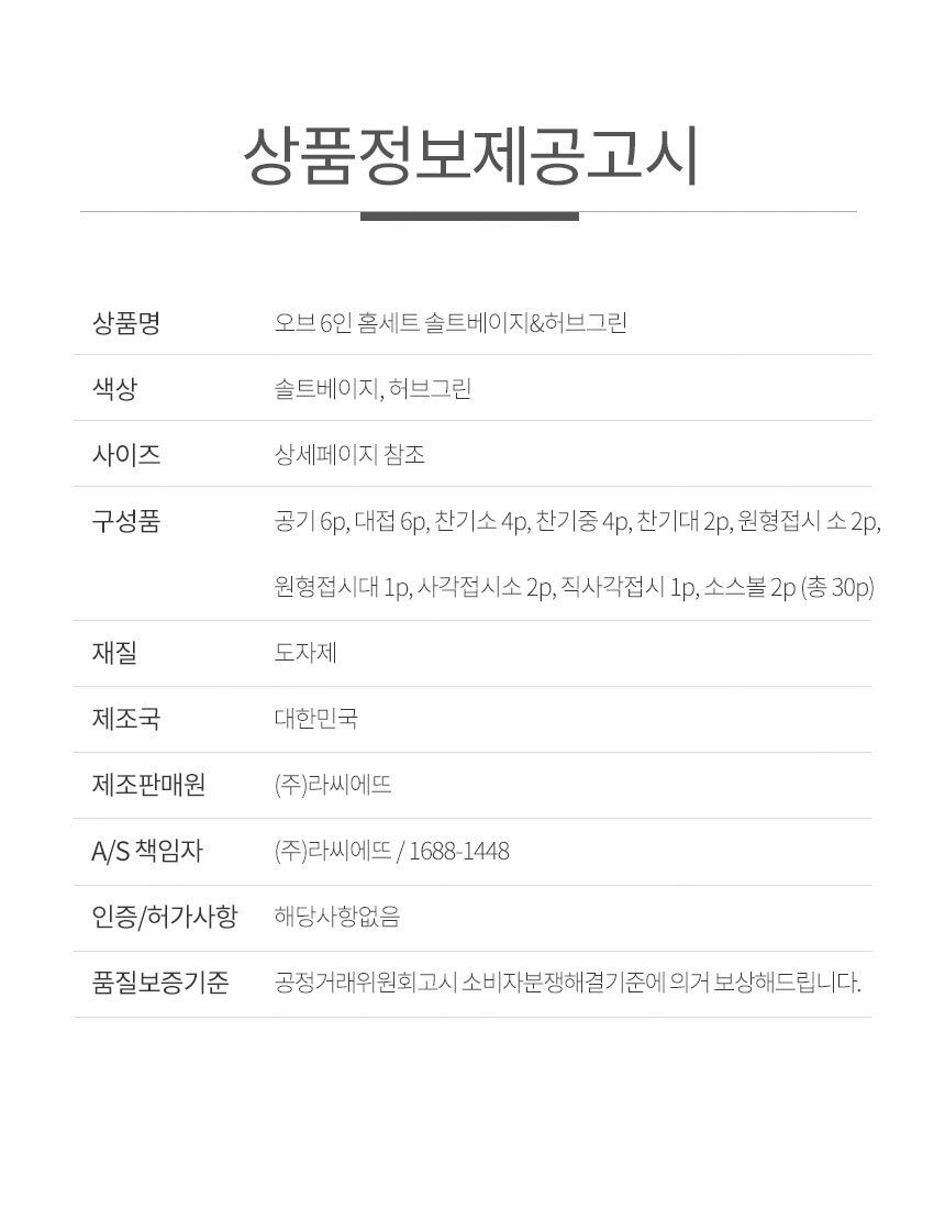 품명 및 모델명 오브 6인 홈세트 솔트베이지/허브그린/컬러믹스