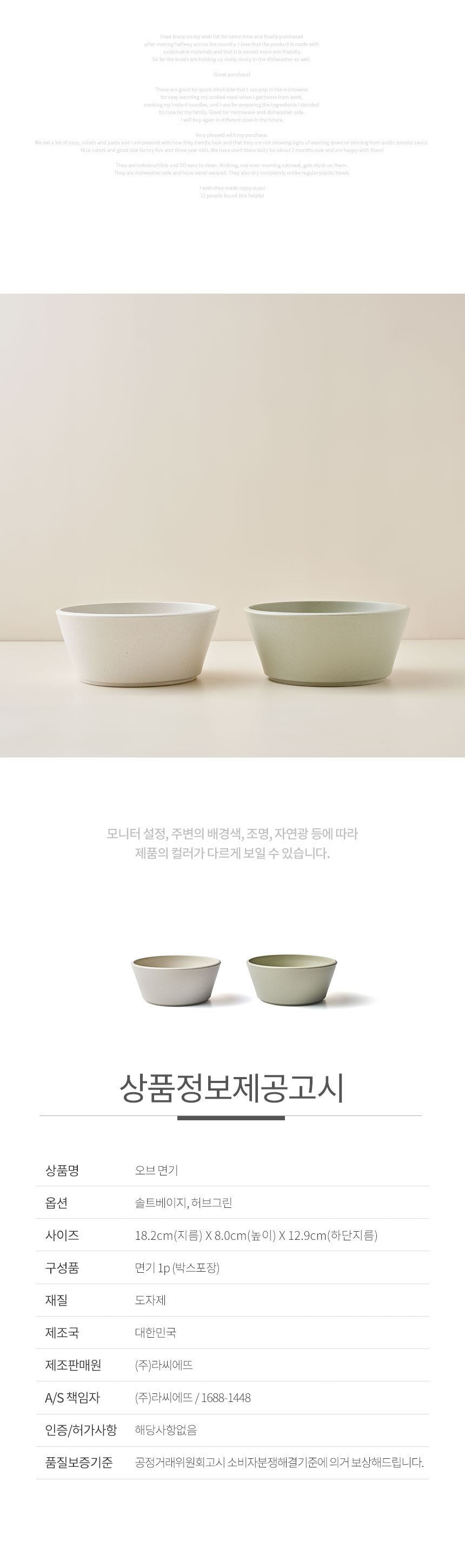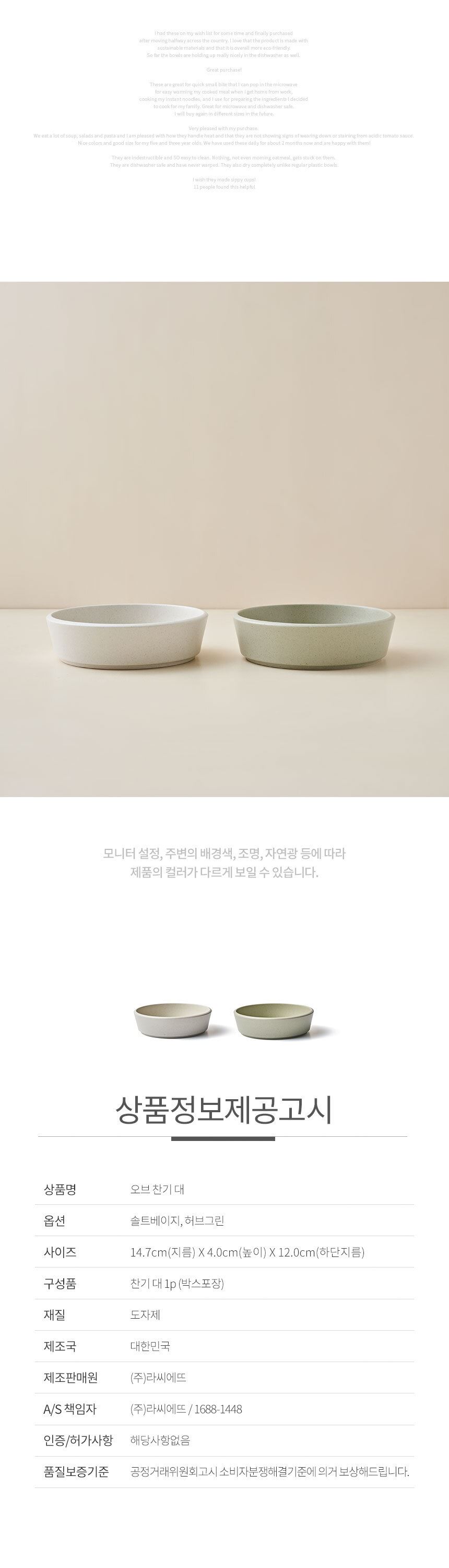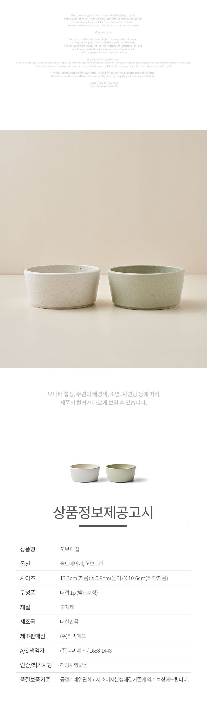 품명 및 모델명 라씨에뜨 오브 도자기 그릇 모음