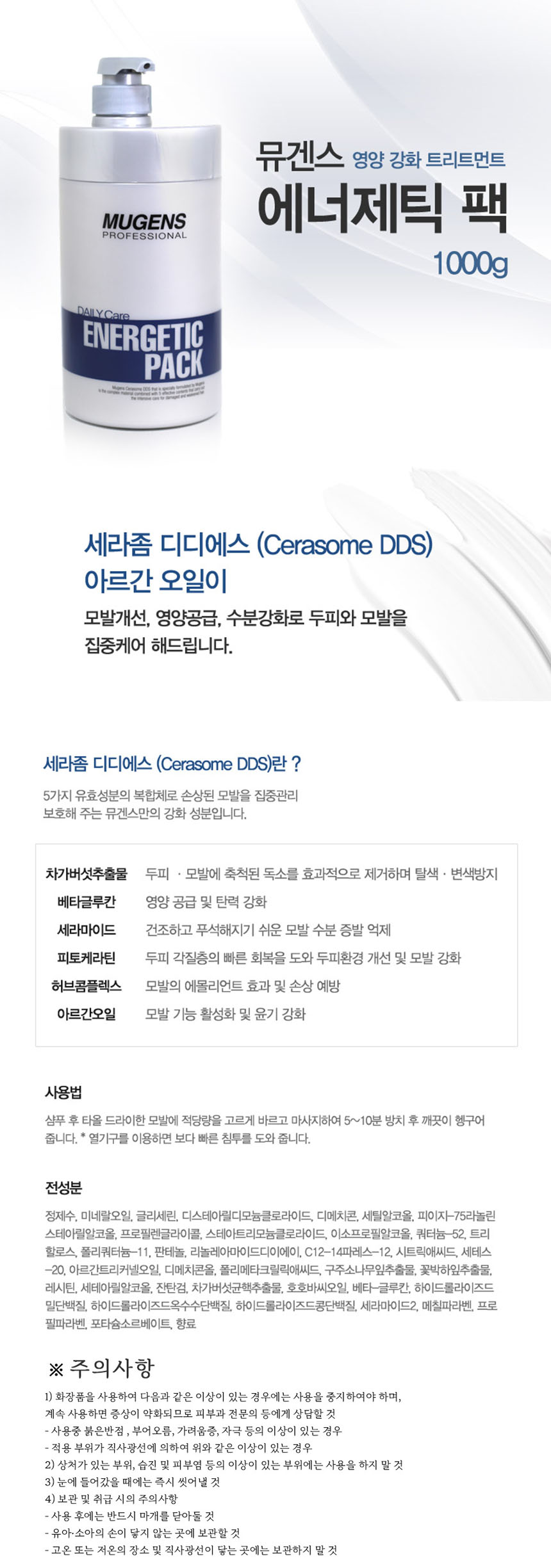• 뮤겐스 에너제틱 팩 1000g 고농축 트리트먼트 모발 영양공급 헤어케어