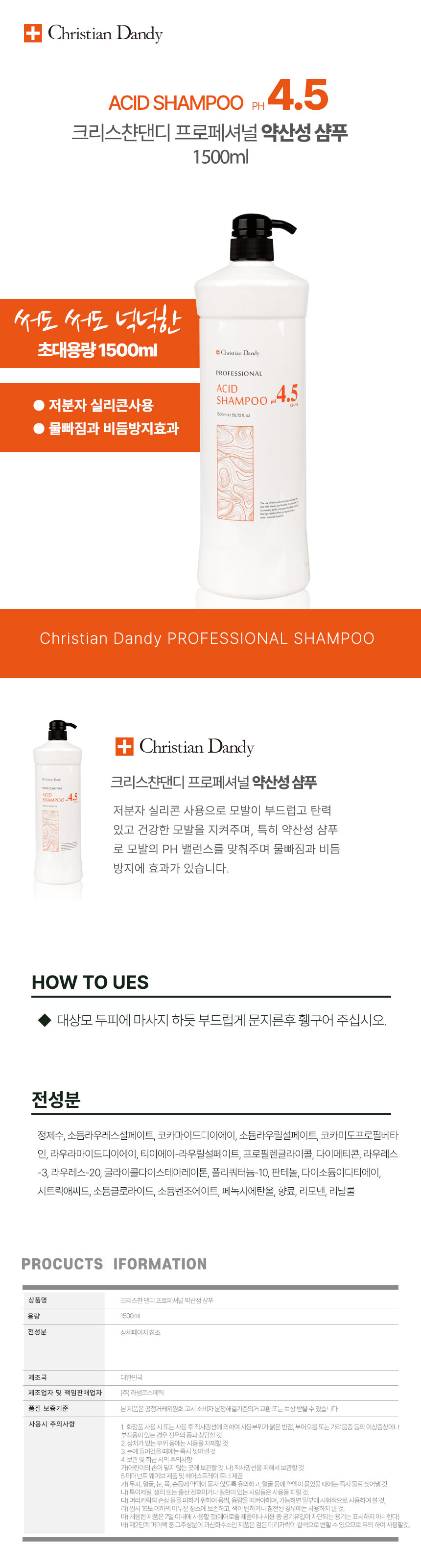 • 라샘 크리스챤 댄디 프로페셔널 약산성 샴푸 1500ml 모발 비듬 케어