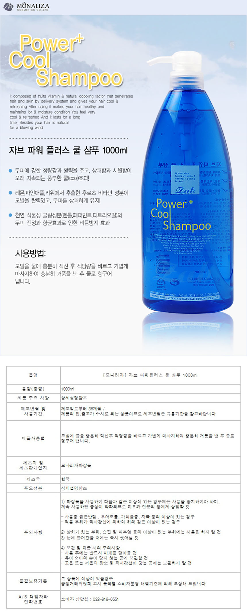 • 자브 파워플러스 쿨 샴푸 1000ml 청량감 두피진정 쿨링샴푸