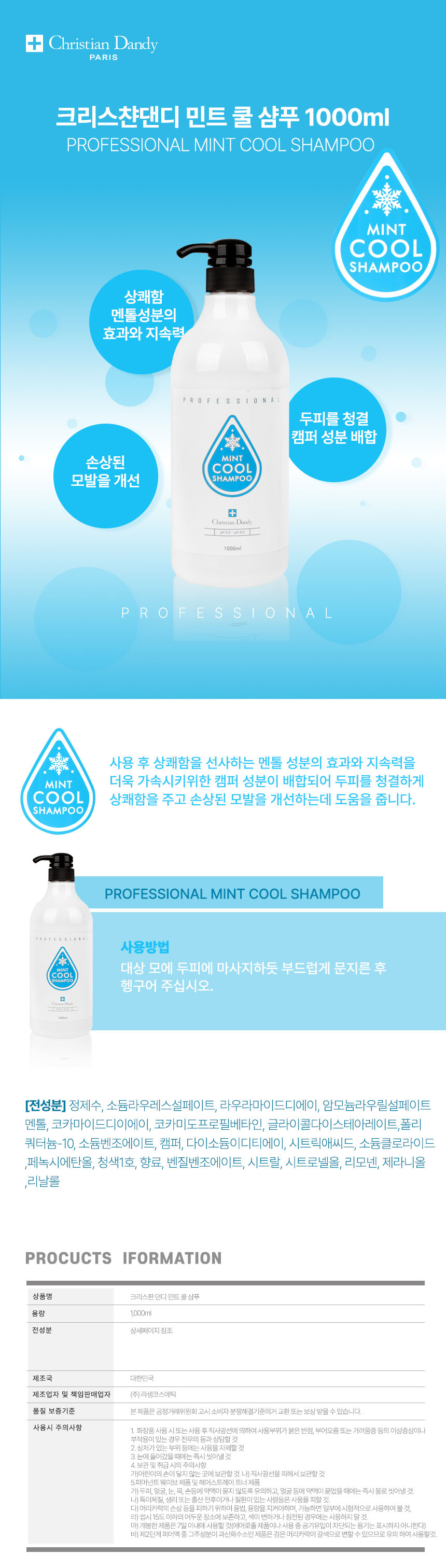 • 라샘 크리스챤 댄디 민트 쿨 샴푸 1000ml 청량감 상쾌함 두피진정 두피케어