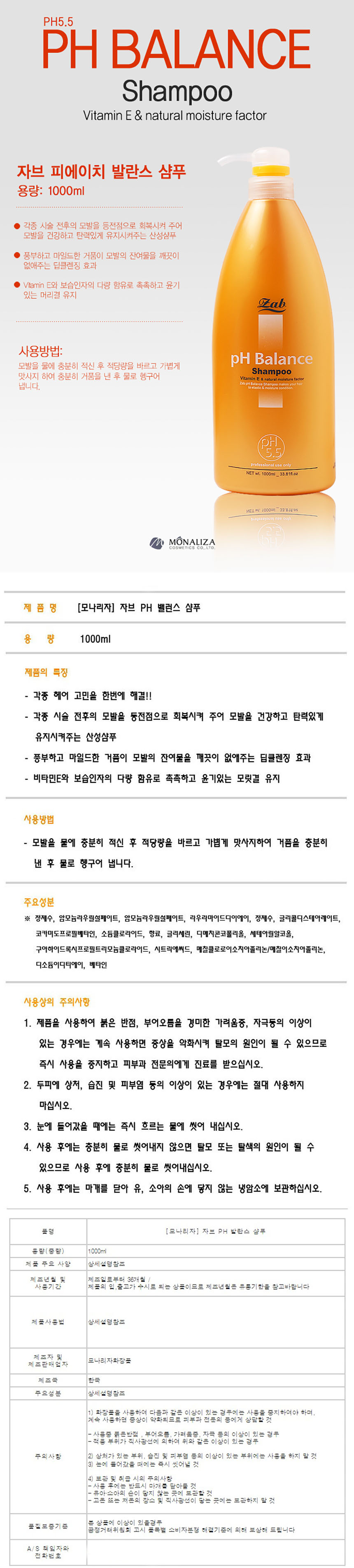 자브 PH5.5 발란스 샴푸 1000ml 산성샴푸 모나리자