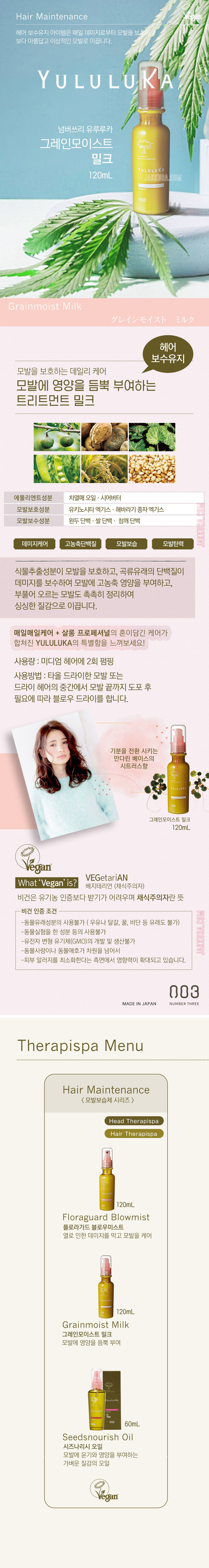 비건인증 유루루카 안전한 그레인모이스트밀크 홈케어 살롱케어