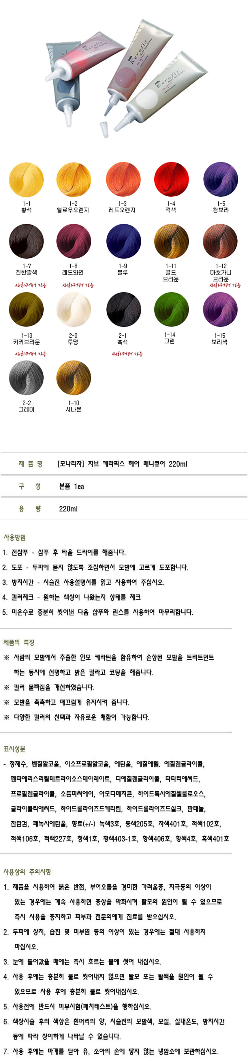 • 모나리자 자브 케라픽스 헤어 매니큐어 220ml 멋내기 새치 염색약