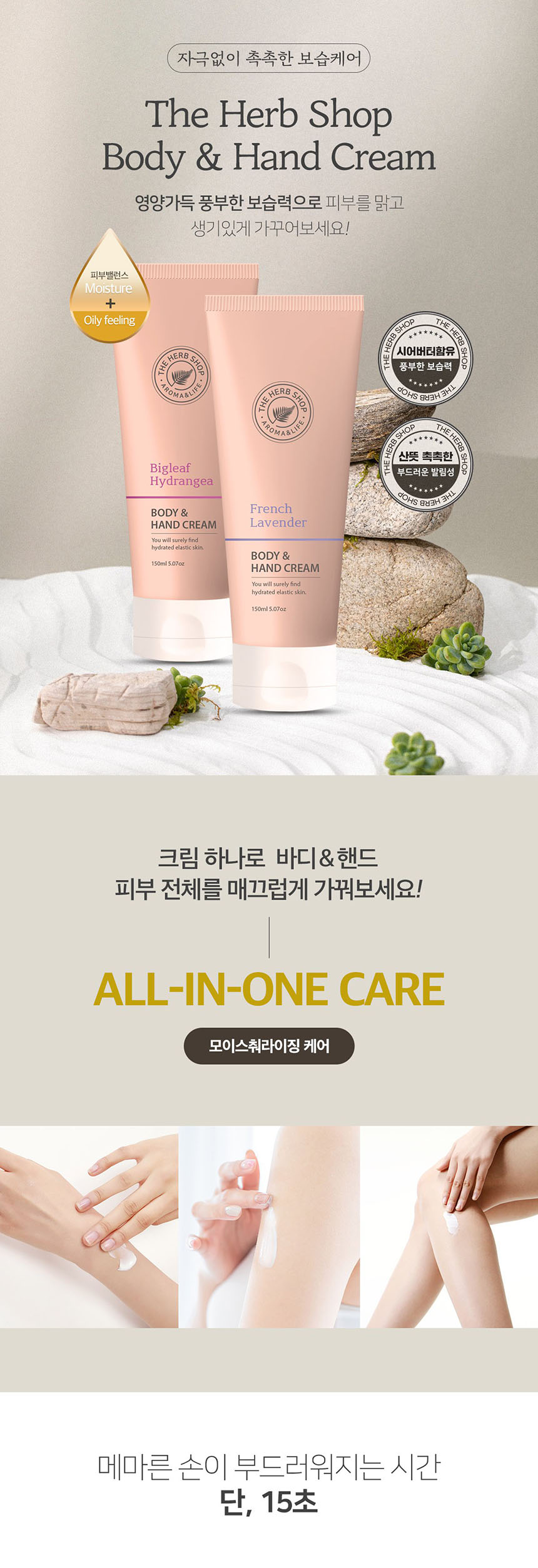 더허브샵 바디 앤 핸드 크림 150ml 보습케어 부드러운발림성