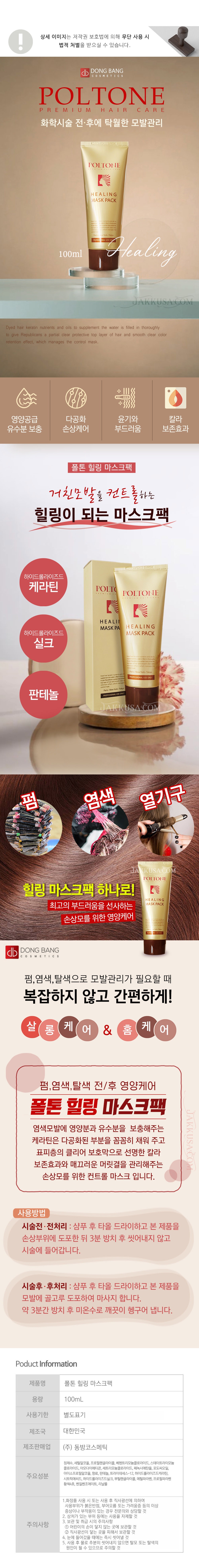 • 동방코스메틱 최신정품 폴톤 힐링 마스크팩 100ml x 5개세트 미용실 손상모 전후처리제
