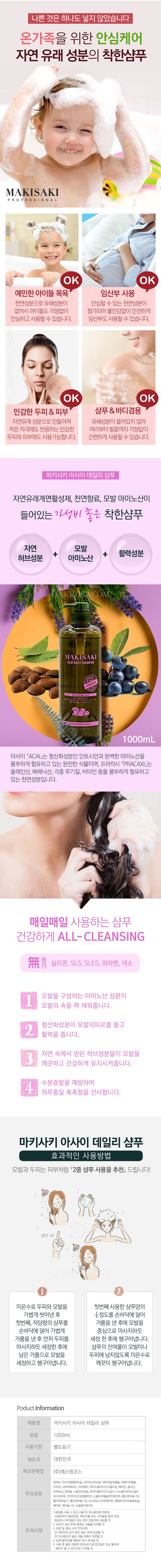 • 순한샴푸 MAKISAKI 마키사키 아사이 데일리 샴푸 1000ml 무실리콘 자연유래 온가족 올인원