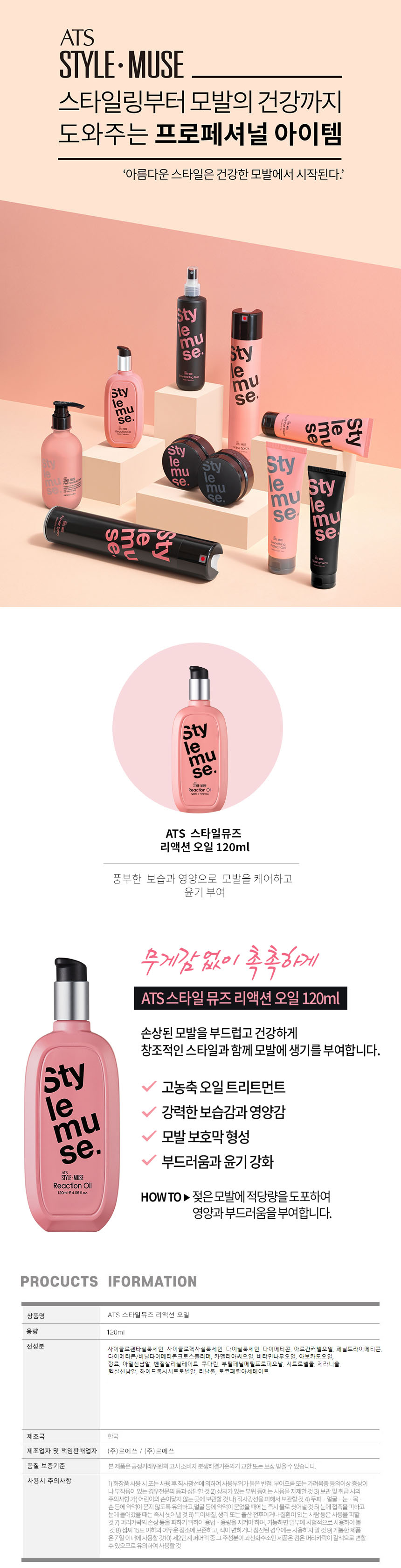 • ATS 스타일뮤즈 리액션 오일 120ml 헤어오일 에센스 트리트먼트 건조한모발