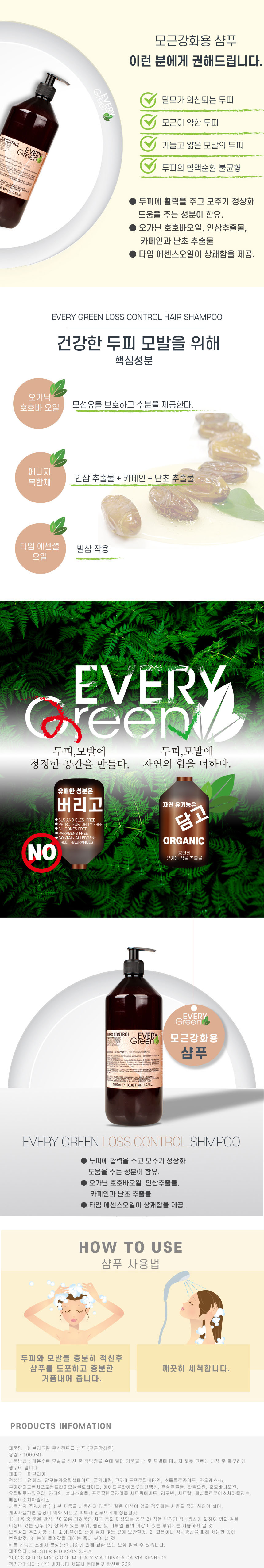 이태리 에브리그린 에너자이징 샴푸1000ml 모근강화용