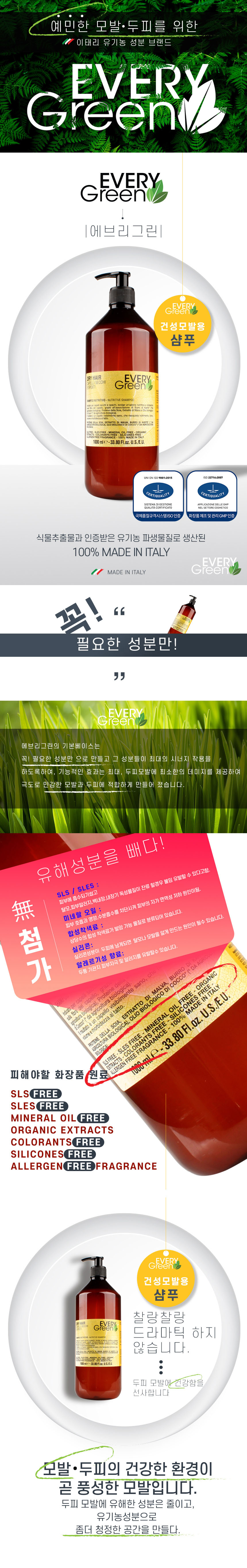 • 이태리 에브리그린 뉴트리티브 샴푸 1000ml 건성모발용