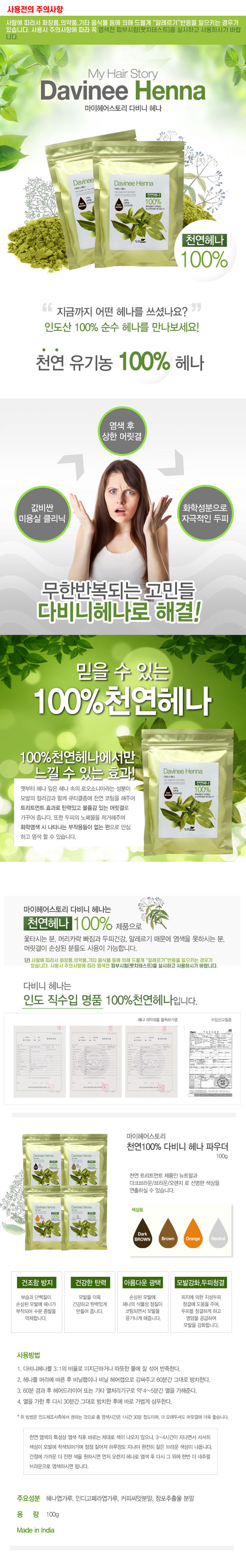 천연 100% 다비니 헤나 파우더 분말 100g 5개묶음