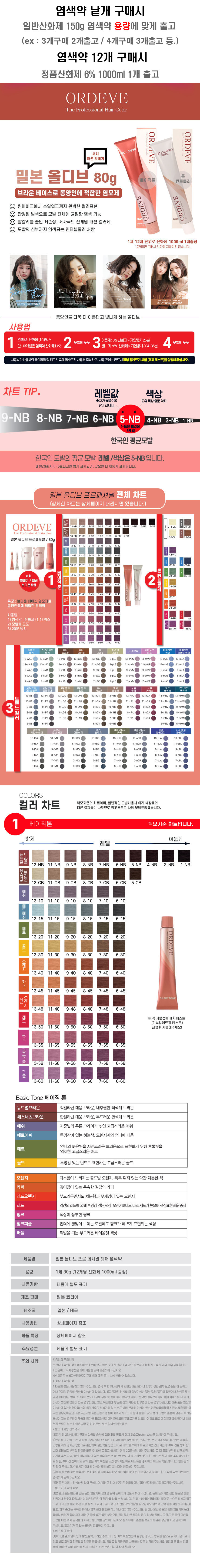 • 밀본 올디브 프로페셔널 염색약 80g 베이직톤 산화제포함 패션 멋내기