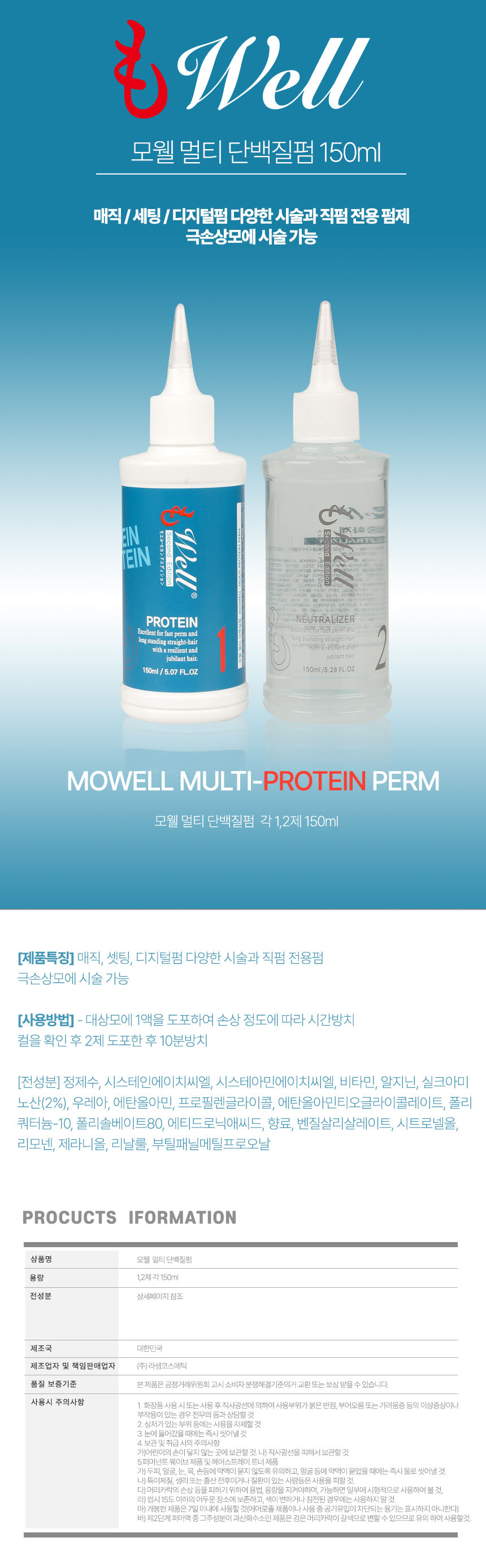 • 모웰 멀티 단백질펌 150ml 30개 한박스 파마약 미용실펌제