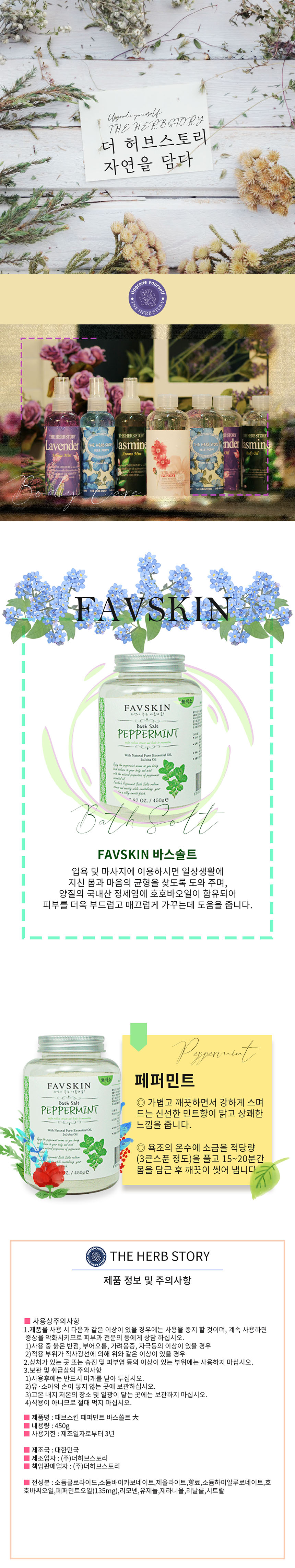 • 더허브스토리 마사지 미용소금 페퍼민트 450g 입욕제 바스솔트