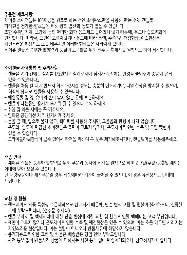 • 제이쥬캔들은 100% 콩으로 제작된