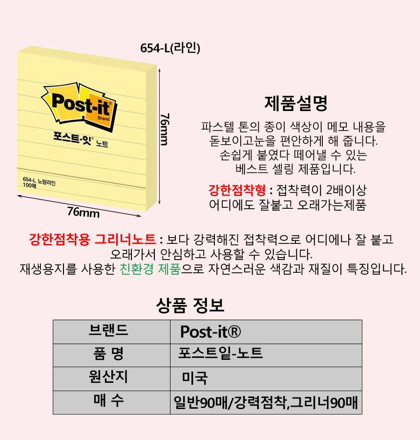 • 3M 점착 접착 메모지 포스트잇 노트 654