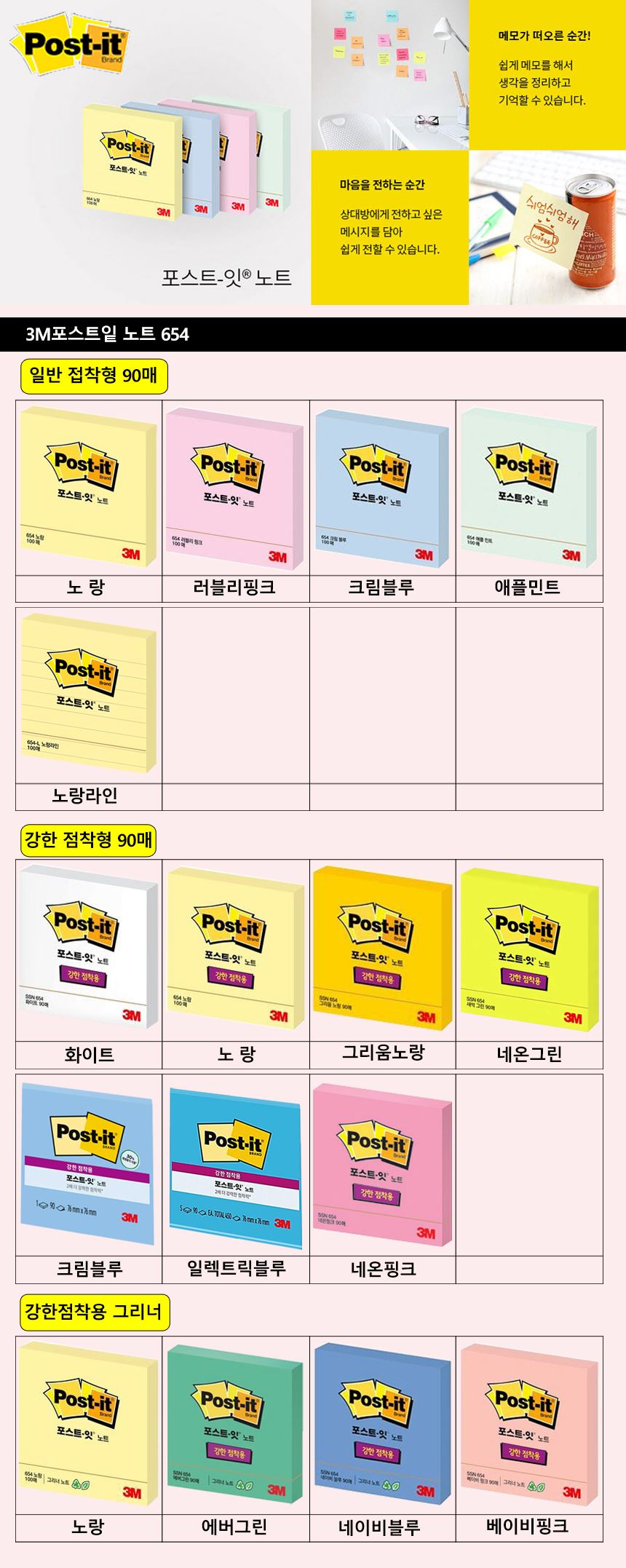 3M 점착 접착 메모지 포스트잇 노트 654 / 설래임 / 디비디비 / 구매하기 / 특가할인