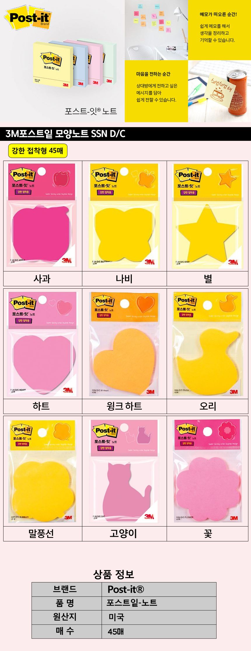 3M 점착 접착 메모지 포스트잇 모양 노트 SSN D/C