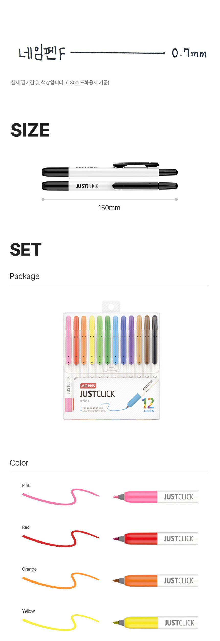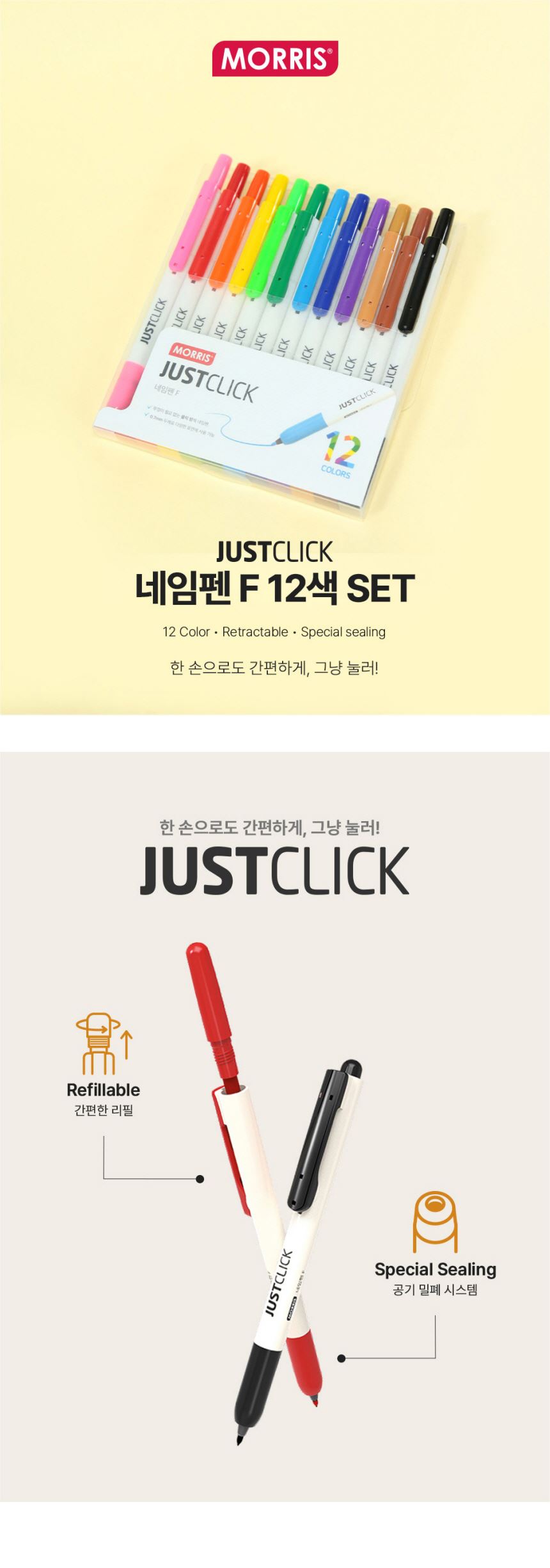 • 모리스 저스트클릭 노크식 네임펜F 12색