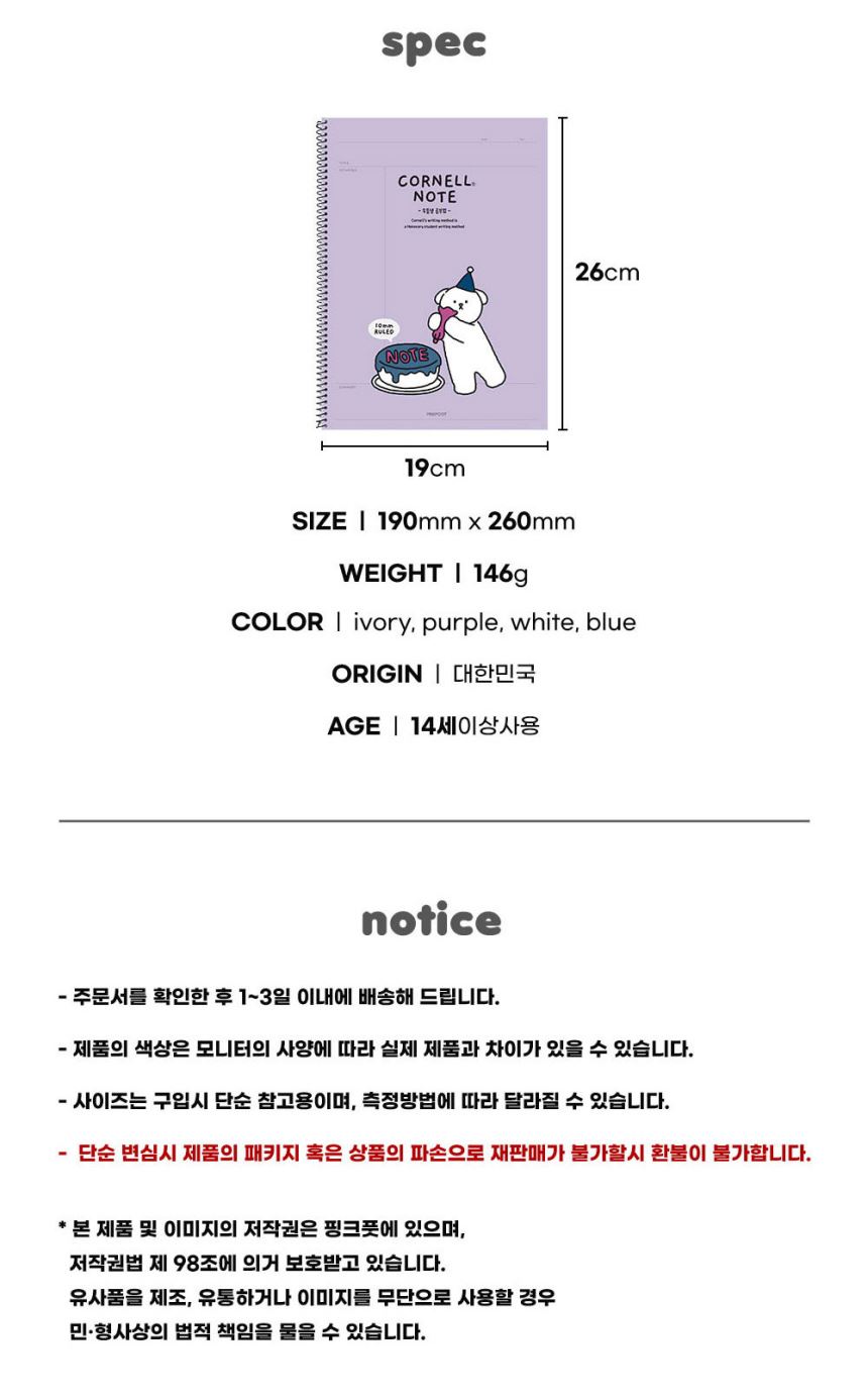 ㆍ 구매자가 미성년자인 경우에는 상품 구입시 법정 대리인이 동의하지 아니하면 미성년자 본인 또는 법정 대리인이 구매취소 할 수 있습니다.